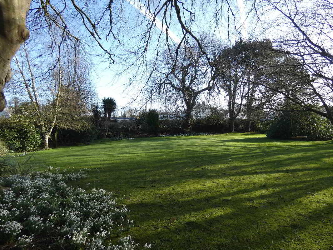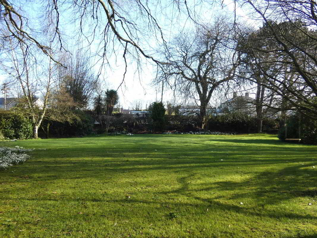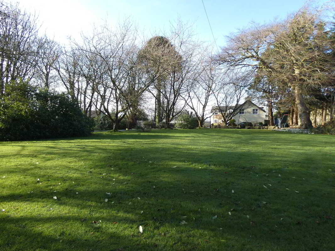 - Mature plot with existing trees and foliage.