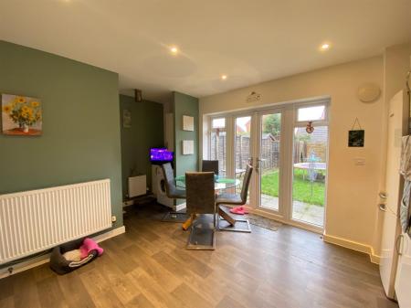 Good sized lounge with a uPvc double glazed panelled window to the front elevation, double panelled radiator, door into the under stair storage cupboard and door through to the dining kitchen.