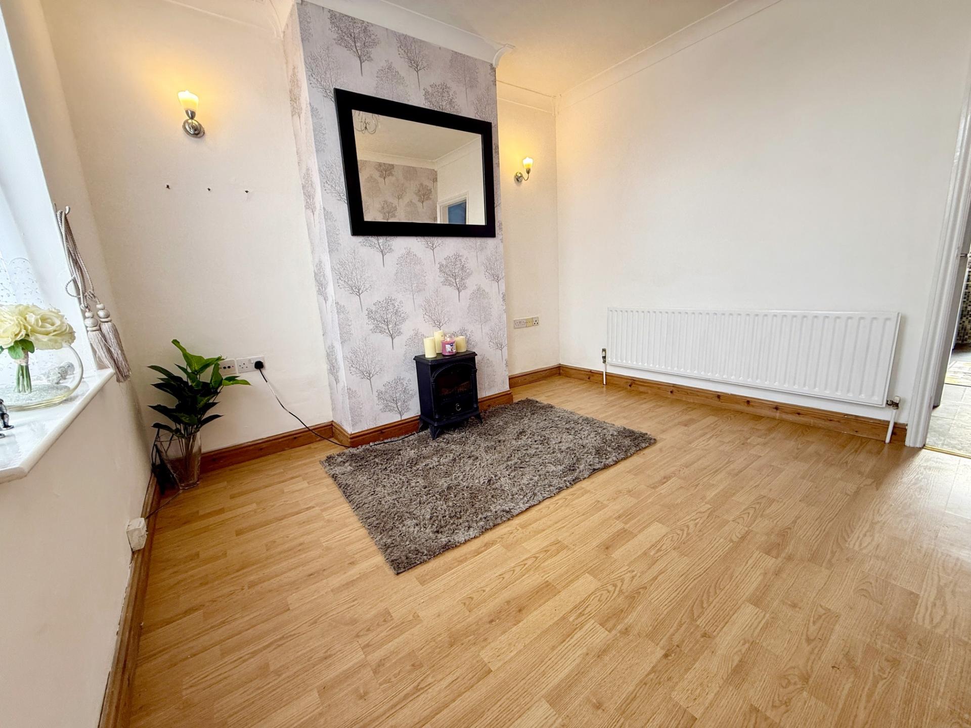 With uPVC double glazed window to door to front elevation, staircase to first floor, wall mounted gas fired boiler, plumbing for washing machine, space for fridge and cooker and having a range of base and eye level units, contemporary tiling and inset one and a quarter stainless steel sink and drainer with hot and cold mixer tap over.