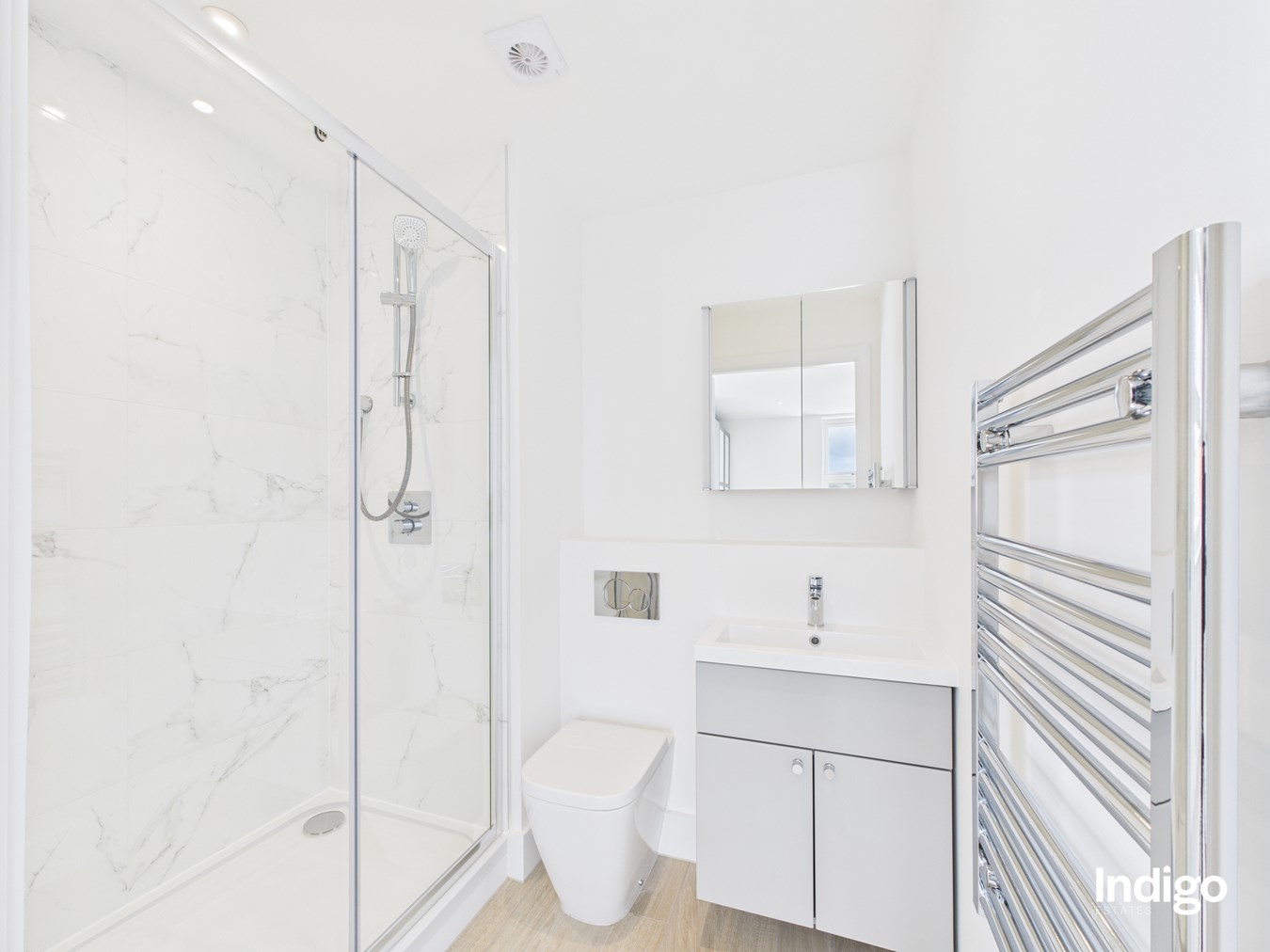 Bathrooms are finished to a high standard with underfloor heating, heated towel rails, tiled floors, and full-height shower wall tiling. All apartments include walk-in utility or storage areas, electric heating, and access to a communal roof terrace with stunning rooftop views across St Helier.