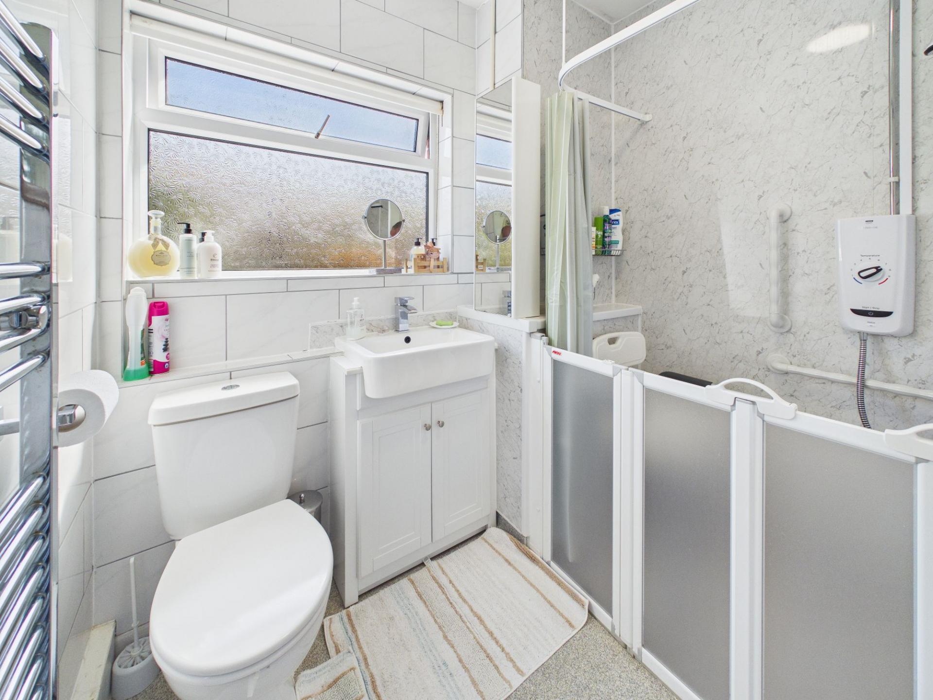 - Modern shower room with wet room style easy access shower
