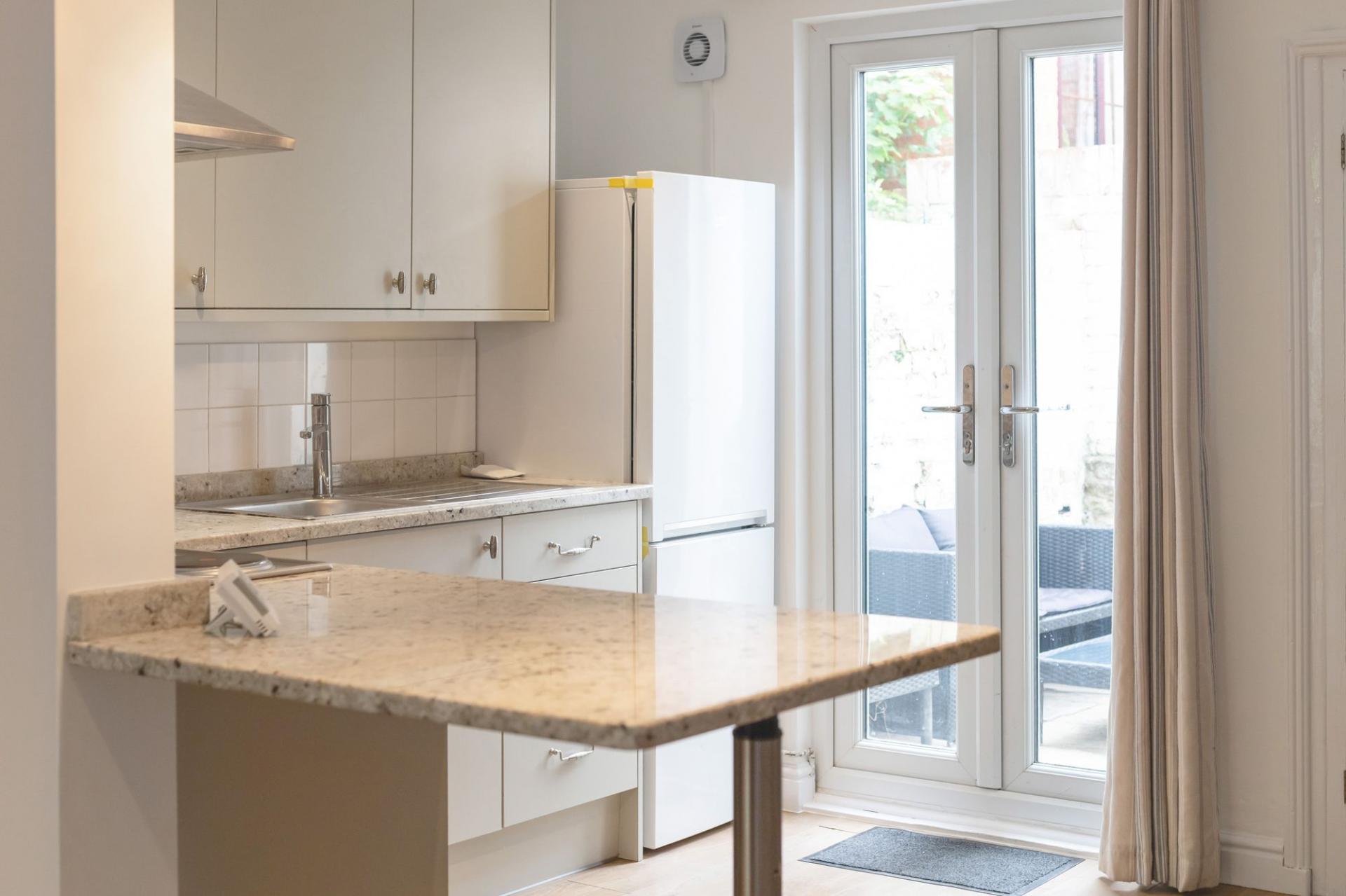 - Delightful front living room with attractive fireplace partly open plan to a stylishly refitted kitchen with double doors to courtyard gardens