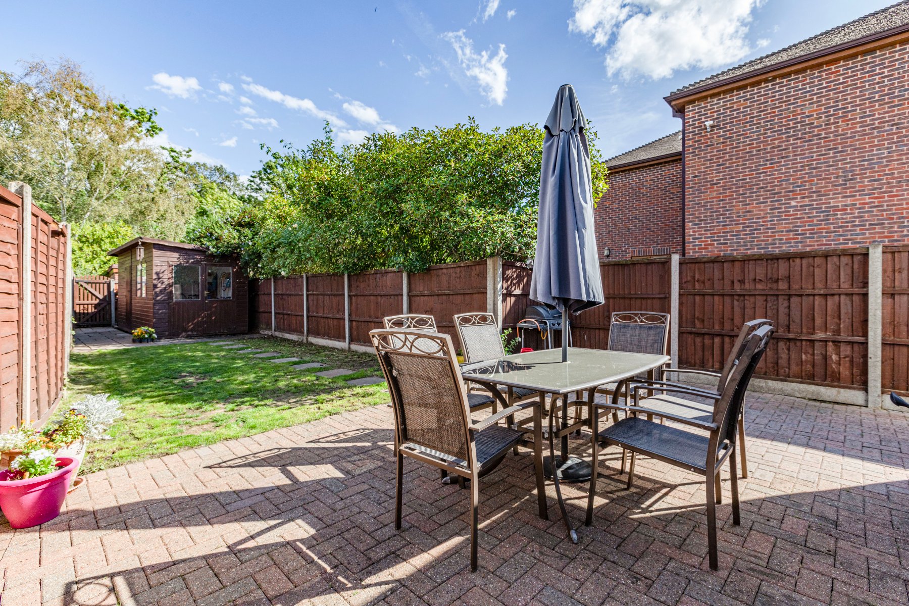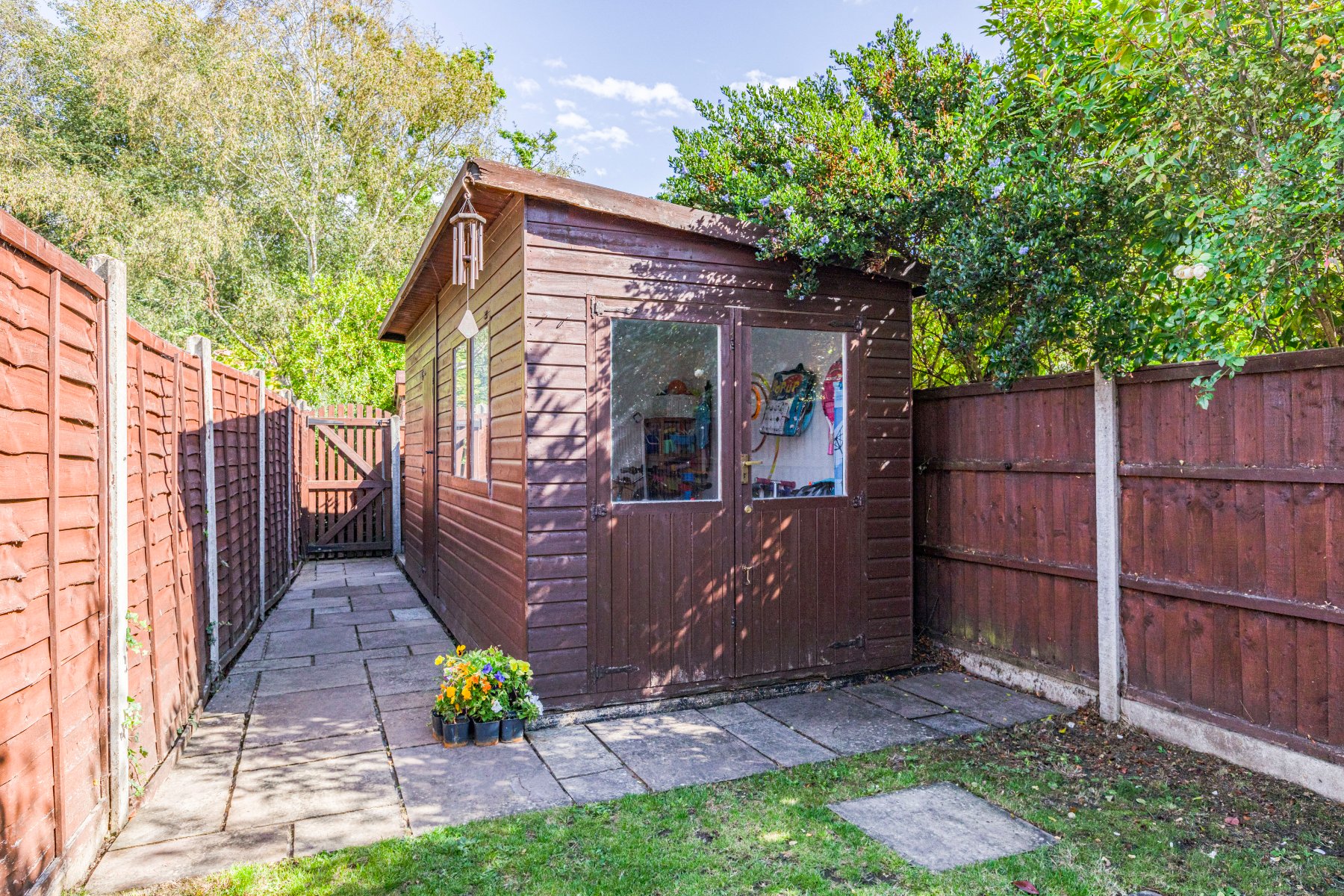 The front of the property offers off-street parking and the rear garden offers an outbuilding ideal for home office and a footpath leading down towards the Wey Navigation Canal.