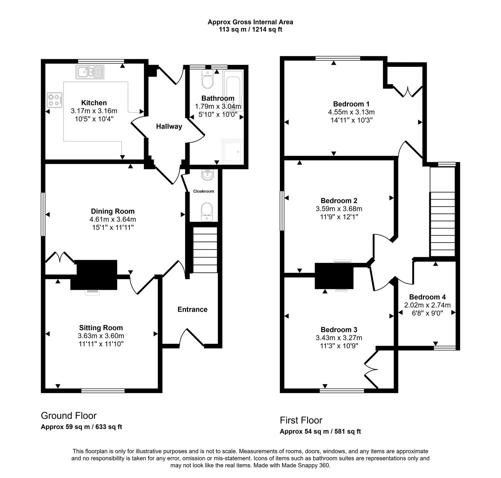 Upstairs, the generous landing gives access to four good-sized bedrooms. Two of these retain original cast iron fireplaces, and the home features high ceilings and large windows throughout, creating a bright and airy atmosphere.
