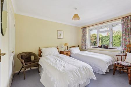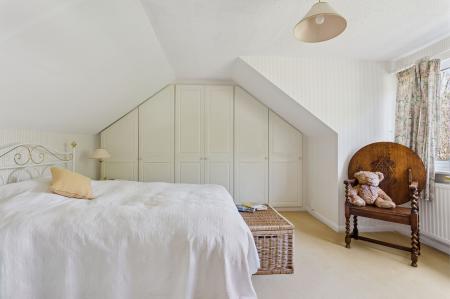 - Principal bedroom with generous integrated wardrobes and views across the front garden