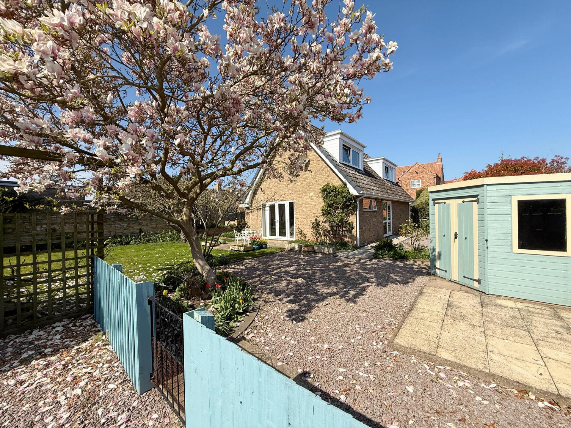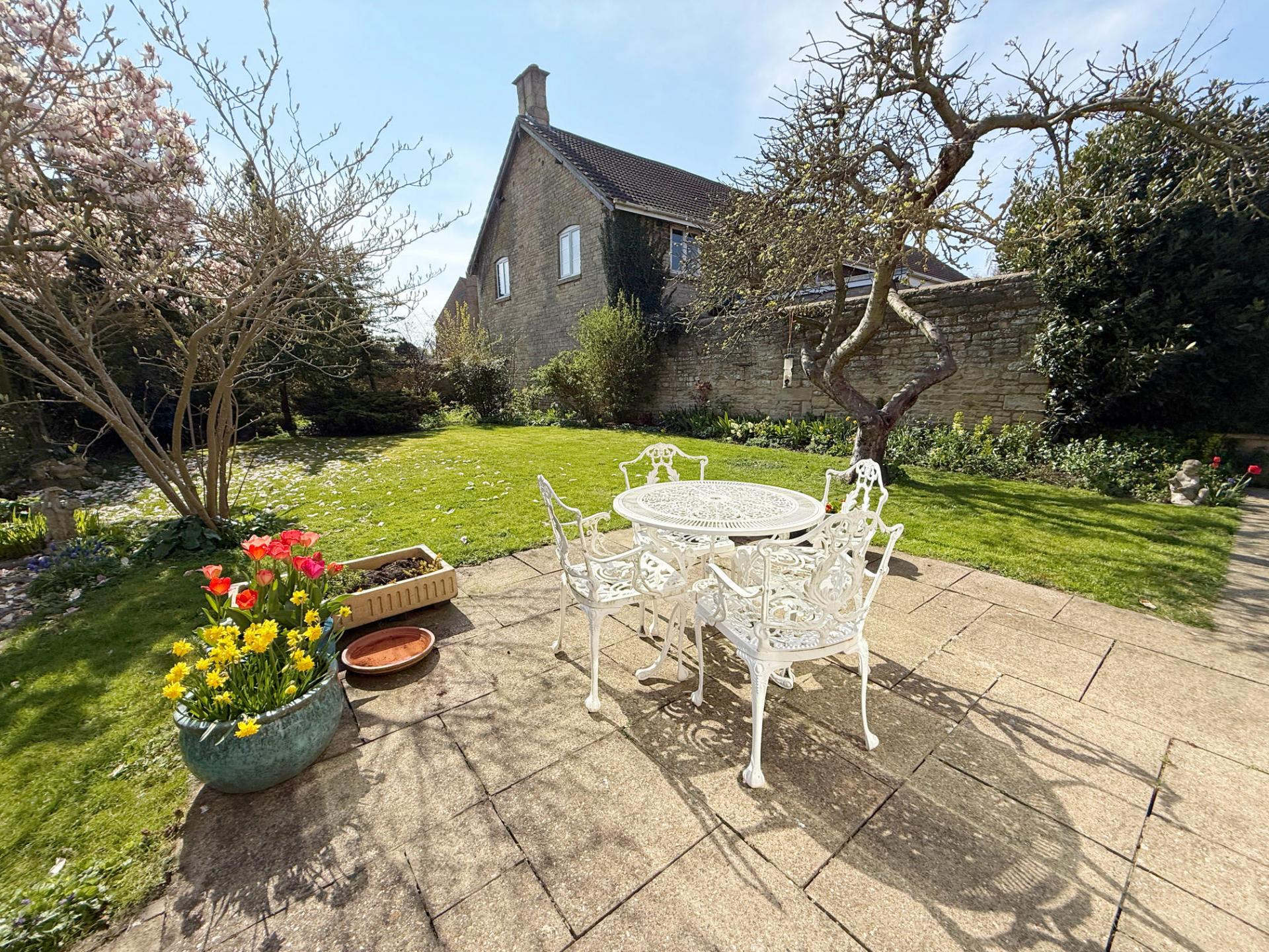 Outside, the wrap-around gardens offer a true sense of privacy, ideal for relaxing, entertaining, or letting children and pets roam freely. The large patio area is perfect for al fresco dining or summer barbecues, and the mature planting provides colour and interest all year round.