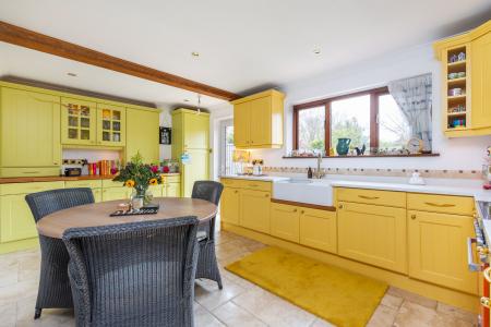 A central hallway opens into the ground floor accommodation, which has stairs rising to the first floor. A large double aspect sitting room has a fitted oak floor, wood burning stove and two pairs of French doors that open into the garden. There is a separate study with a front aspect window. The kitchen/dining room opens into, and overlooks, the rear garden and is fitted with a range of hand painted units with sleek white composite countertops and plenty of space for a good size table and chairs. There is a separate utility room, which opens into the garage.