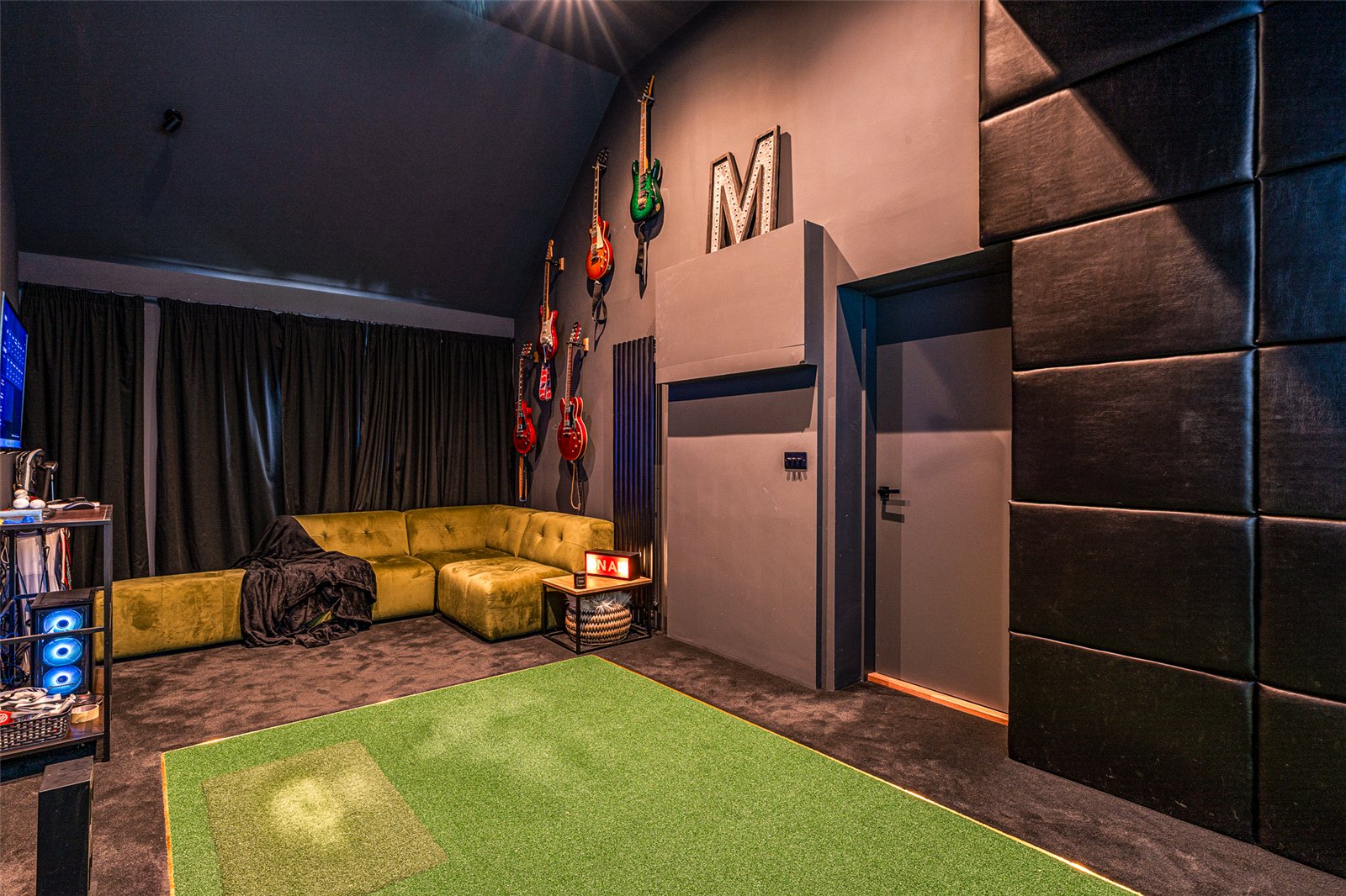 Inside, the property has been given a complete interior makeover, creating a series of spaces that are as practical as they are visually stunning. The ground floor provides a wonderful sense of flow, with light-filled rooms designed for both family life and entertaining. The dining room conceals one of the home's most remarkable surprises a hidden doorway that leads into a spectacular golf simulation and theatre room, offering a luxury leisure space rarely found in properties of this kind.