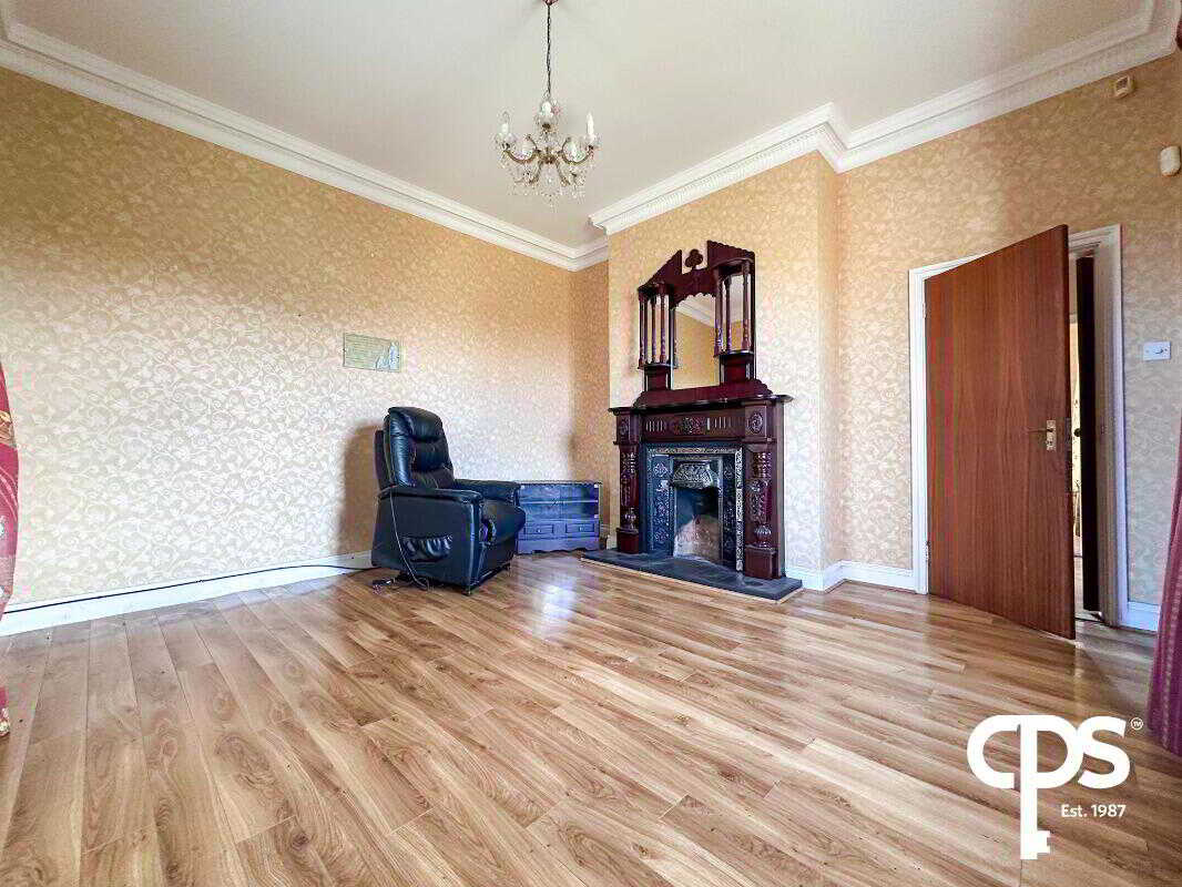 The living area boasts wooden effect flooring throughout and benefits from large frontal facing windows create ample lighting. The room also has electrical points fitted throughout with a double radiator and boasts an open fire that sits on a marble hearth with a magnificent wooden surround.