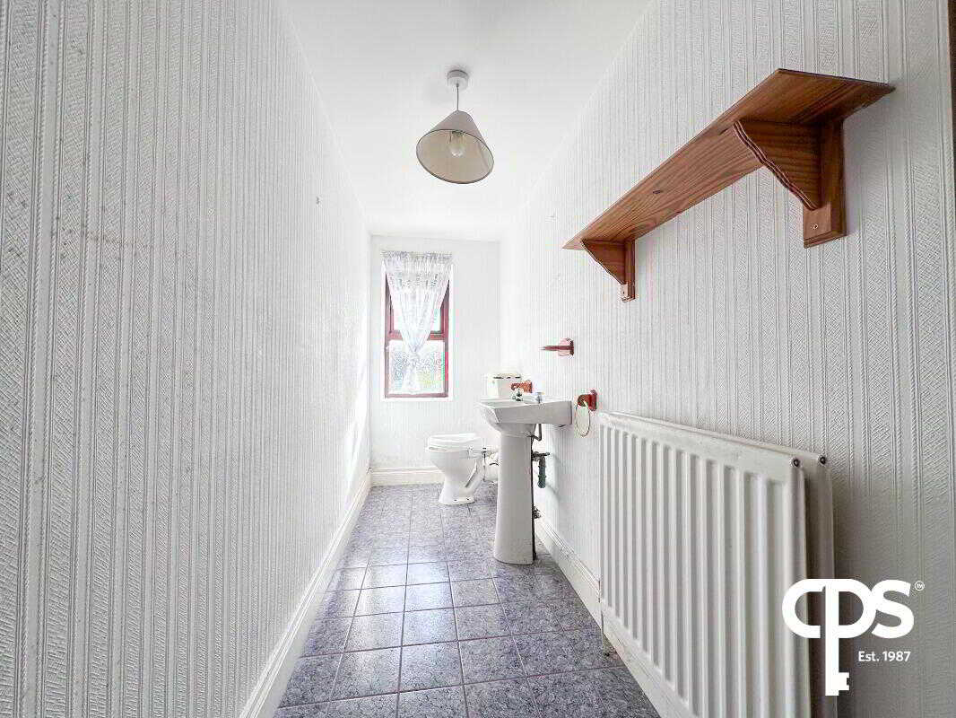 The downstairs W/C offers a two piece suite comprising of W/C, wash hand basin. Also comprises porcelain tiled floors and décor to match.