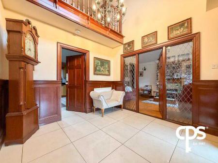 The entrance hall features tiled flooring and a double-height ceiling, creating a bright and welcoming space. Ideal for greeting guests, it leads seamlessly into the reception rooms and dining areas.