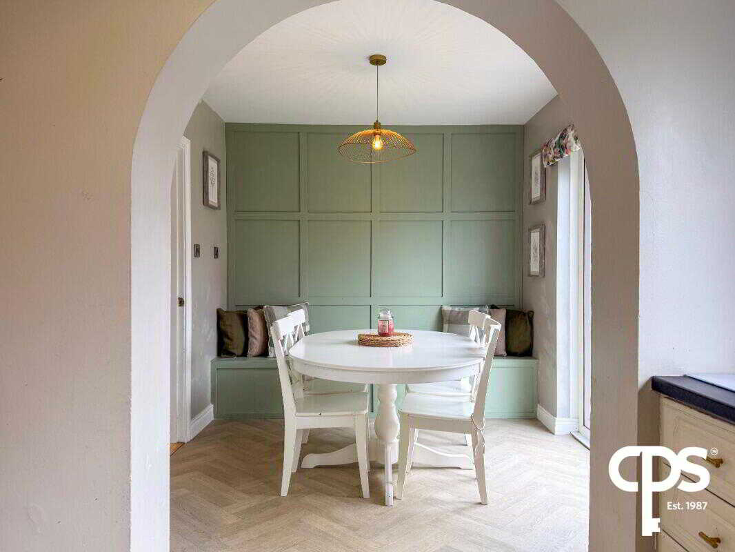 A superb open-plan space, perfect for everyday living and entertaining. The kitchen is fitted with a range of storage units and includes a Blanco stainless steel sink, AEG integrated electric hob, washing machine, and dishwasher. Finished with wooden effect laminate flooring and a modern flexi pull-out tap. Double patio doors flood the room with natural light and provide direct access to the rear garden, with ample space for dining.