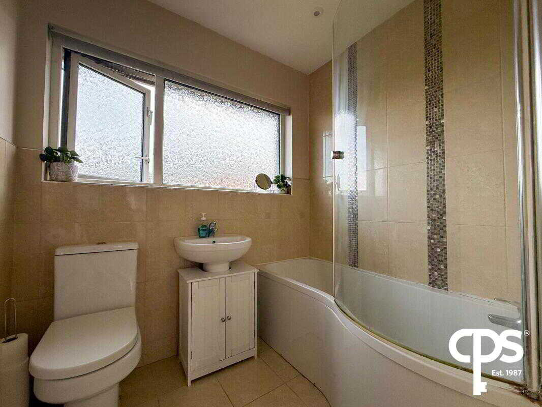 Modern three-piece suite comprising a bath with overhead shower, tiled flooring, and tiled splashback surround.External Features To the front, the property offers a private garden with off-street parking.