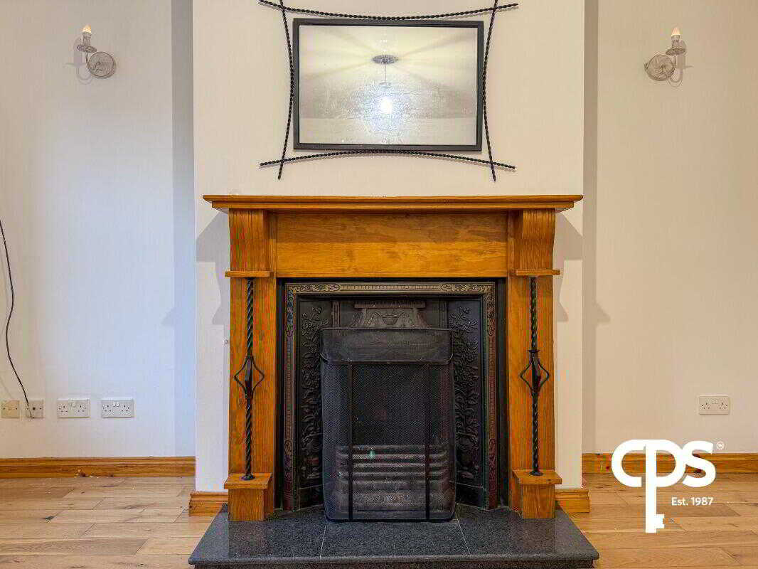 A bright front-facing reception room featuring solid wooden flooring, an open fire with wooden surround and marble hearth, and a back boiler. The room further benefits from a newly installed double radiator and enjoys pleasant views to the front of the property.