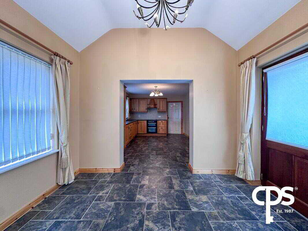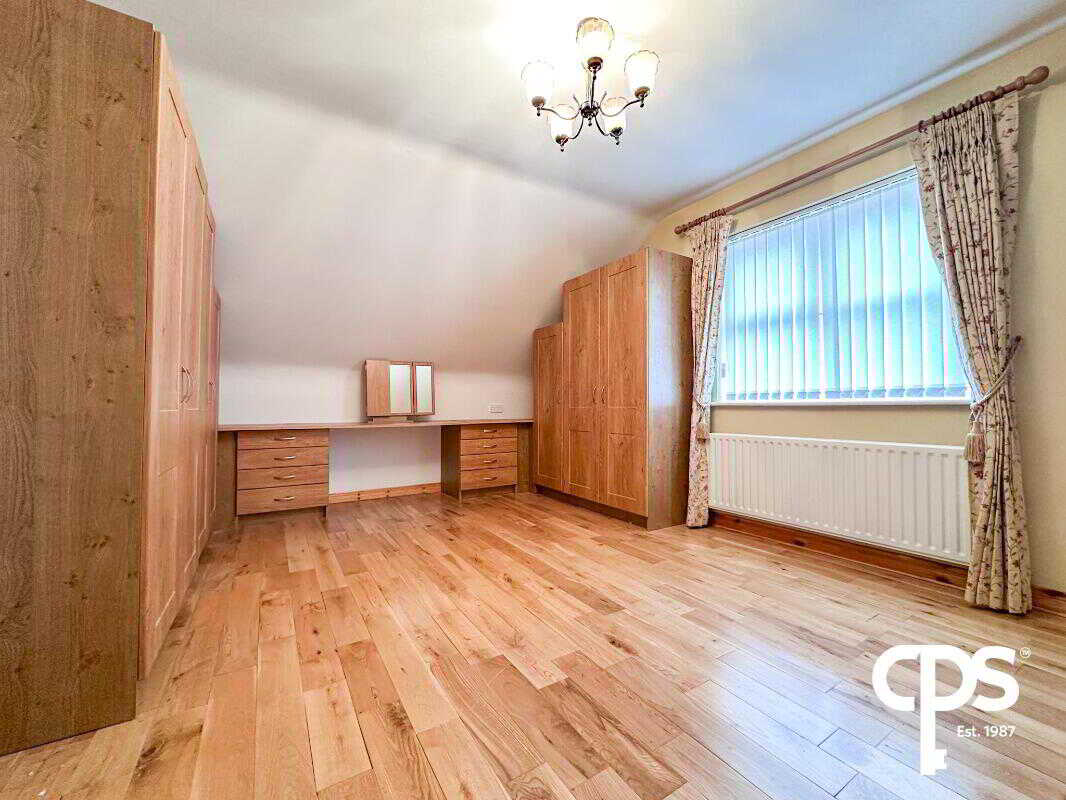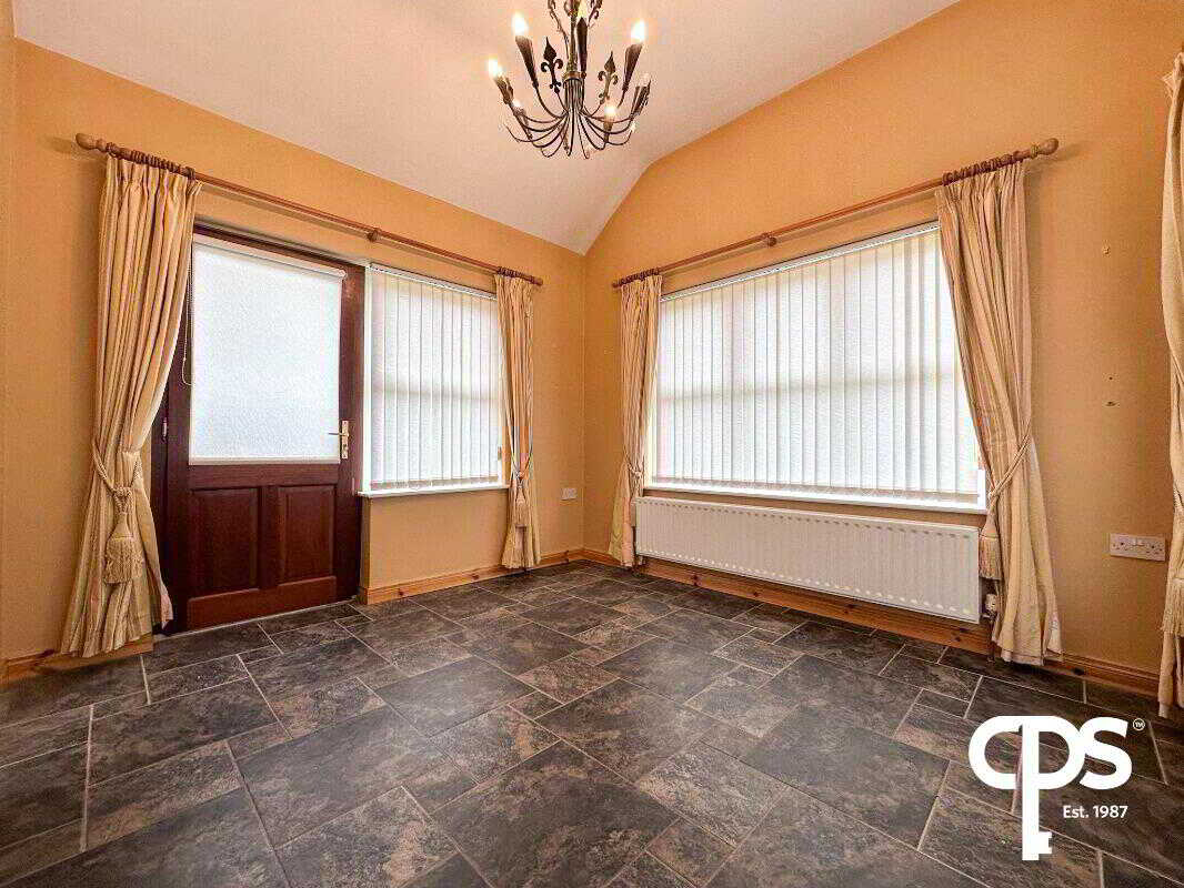 CPS are thrilled to welcome this fully detached property, 6 Glen Macha, to the open market. Located in a great neighbourhood in Armagh, accessed off Cathedral Road, this property offers proximity to all local amenities, and a comfortable living experience. For any further inquiries or to book a viewing, please contact our Armagh office at 028 3752 8888 Features 5 Bedrooms 2 Bathrooms Private Driveway Reception Room Fully Equipped Kitchen Ground Floor Access Great Location Enclosed Rear Garden Space Ground Floor Reception Room – 5.16m x 3.37m The reception room offers solid wood flooring, a feature fireplace with a marble surround and marble hearth, and front aspect views onto the adjacent development. Reception Room 2/Bedroom 1 – 3.14 x 3.59m The secondary reception room that could also be utilized as the first bedroom benefits from solid wood flooring, frontal views, and electrical sockets throughout the space. Kitchen & Sunroom – 8.20m x 3.37m The kitchen area features high and low storage units, tiled flooring, a built-in cooker below an extractor fan, a HotPoint convection oven, and a built-in refrigerator. The kitchen is directly paired with the sunroom, which could be utilized as a dining area. Sunroom – 3.04m x 3.22m The sunroom provides tiled flooring, is adjacent to the kitchen, and offers rear facing views as well as access to the property’s rear garden through a single door. Bathroom 1 - 2.37m x 2.16m The ground floor bathroom is equipped with tile flooring, a W/C, hand wash basin, and a corner wet room style walk-in shower. Bedroom 2 – 2.70m x 4.65m The bedroom offers solid wood flooring, a radiator, and electrical sockets throughout the space. Bedroom 3 – 3.57m x 3.37m Adjacent to the second bedroom, this room offers solid wood flooring, a single radiator, and electrical sockets scattered throughout the room. Utility Room – 1.67m x 3.52m The utility room provides high and low storage units, a stainless-steel hand wash basin, and access to the property’s exterior via a single door. 1st Floor Bedroom 4 – 5.77m x 3.60m The bedroom benefits from built-in high and low storage units, solid wood flooring, frontal view, electrical sockets throughout, and a radiator. Bedroom 5 – 5.78m x 3.23m The bedroom includes solid wood flooring, electrical sockets, and a radiator situated directly below the window. Bathroom 2 – 2.71m x 1.71m The upstairs bathroom features tiled flooring, a W/C, hand wash basin, corner shower, and a sky light, imparting the space with natural light. Exterior Front Garden - The front of the property includes a narrow driveway to store vehicles, a walkway leading to the front entrance, accompanied by a grass area and some adjacent shrubbery. Back Garden - The property’s back garden offers an enclosed space that is a mix of grass and patio slabs. The back garden has a walkway that provides access to the front of the house and offers an area to store the bins.