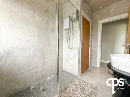 Fully tiled bathroom with walk-in electric shower