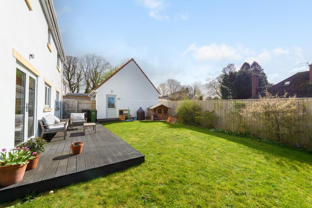 - Attractive south-facing rear garden, mainly laid to lawn with mature shrub borders, raised planters and a decked seating area