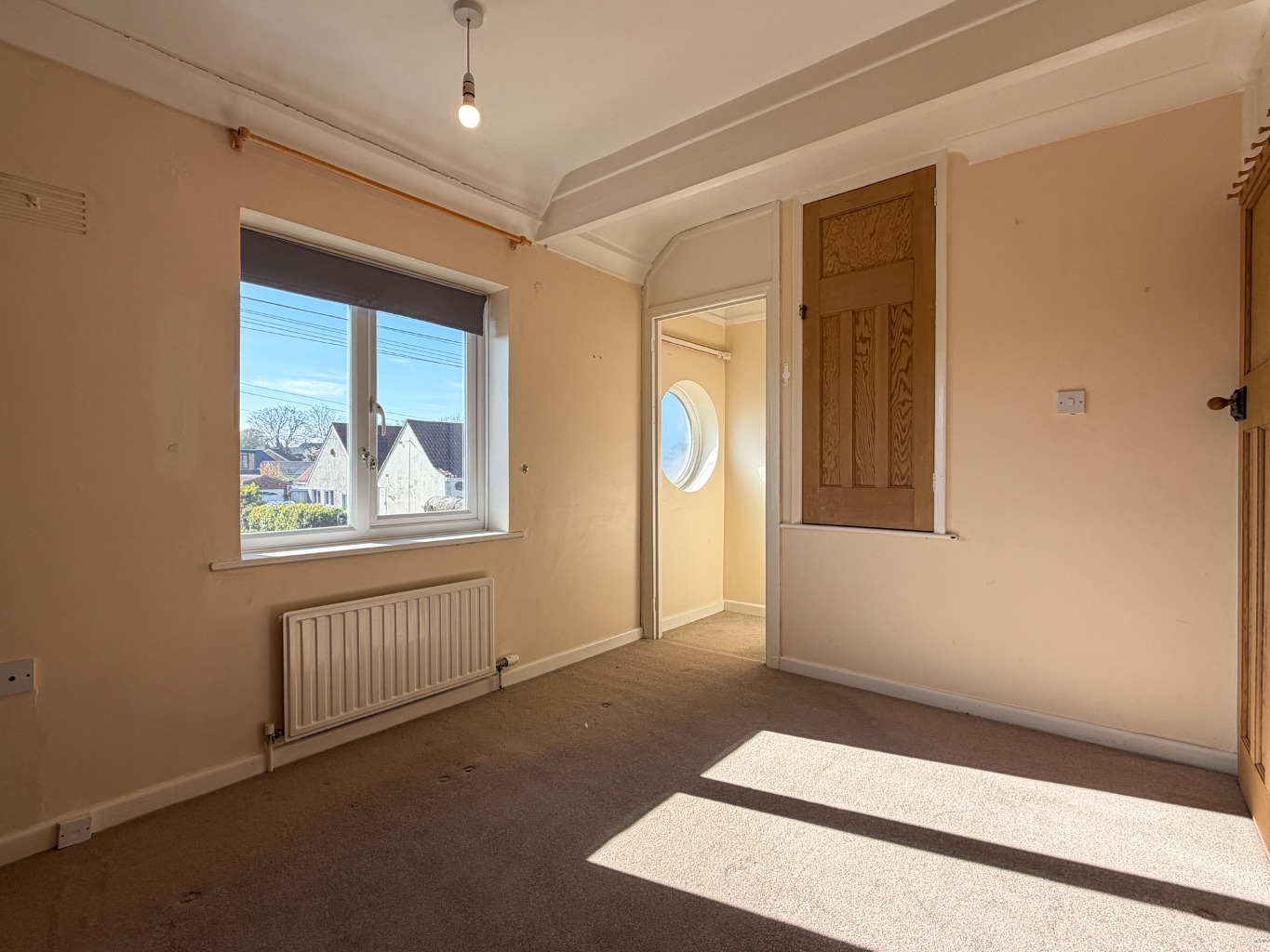 Upstairs, the property boasts four well-proportioned bedrooms leading off the landing, offering comfortable private spaces for all family members. Each room benefits from good natural light and provides flexibility for use as bedrooms, a home office, or hobby rooms, depending on individual requirements. The larger bedroom at the front of the property benefits from a walk-in recess with a porthole window which could be utilised as a wardrobe if desired.
