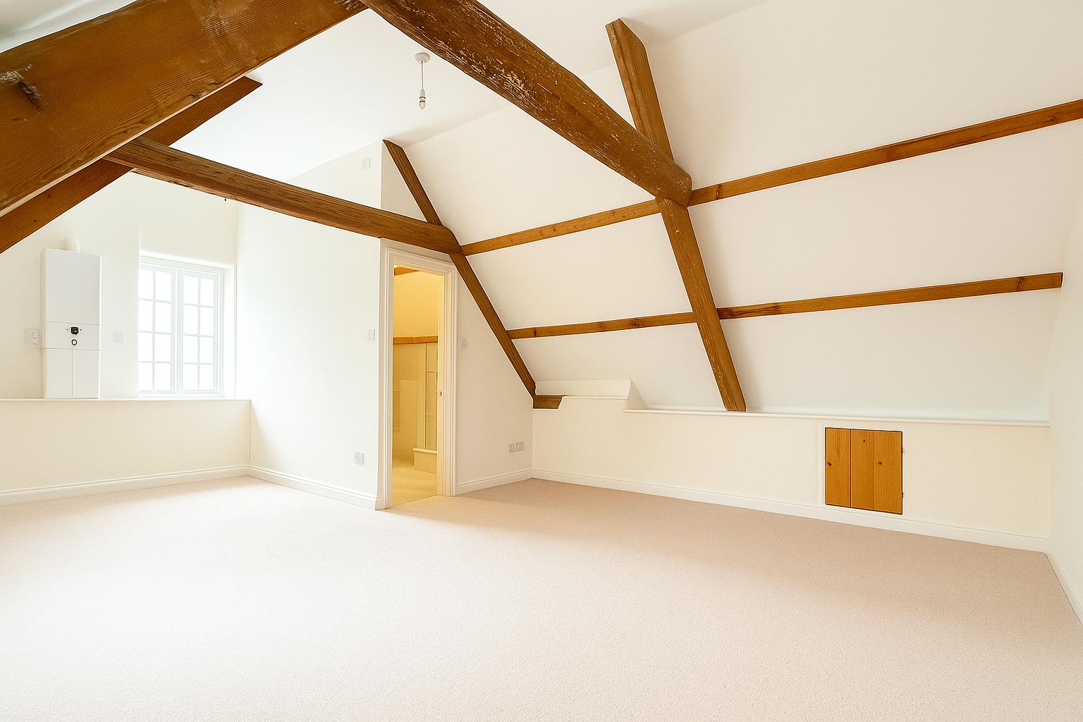 Landing - Doors leading to the accommodation with two radiators and two windows to the side aspect. Further benefiting from a storage cupboard that houses the gas boiler and a separate storage cupboard that benefits from access to the loft.