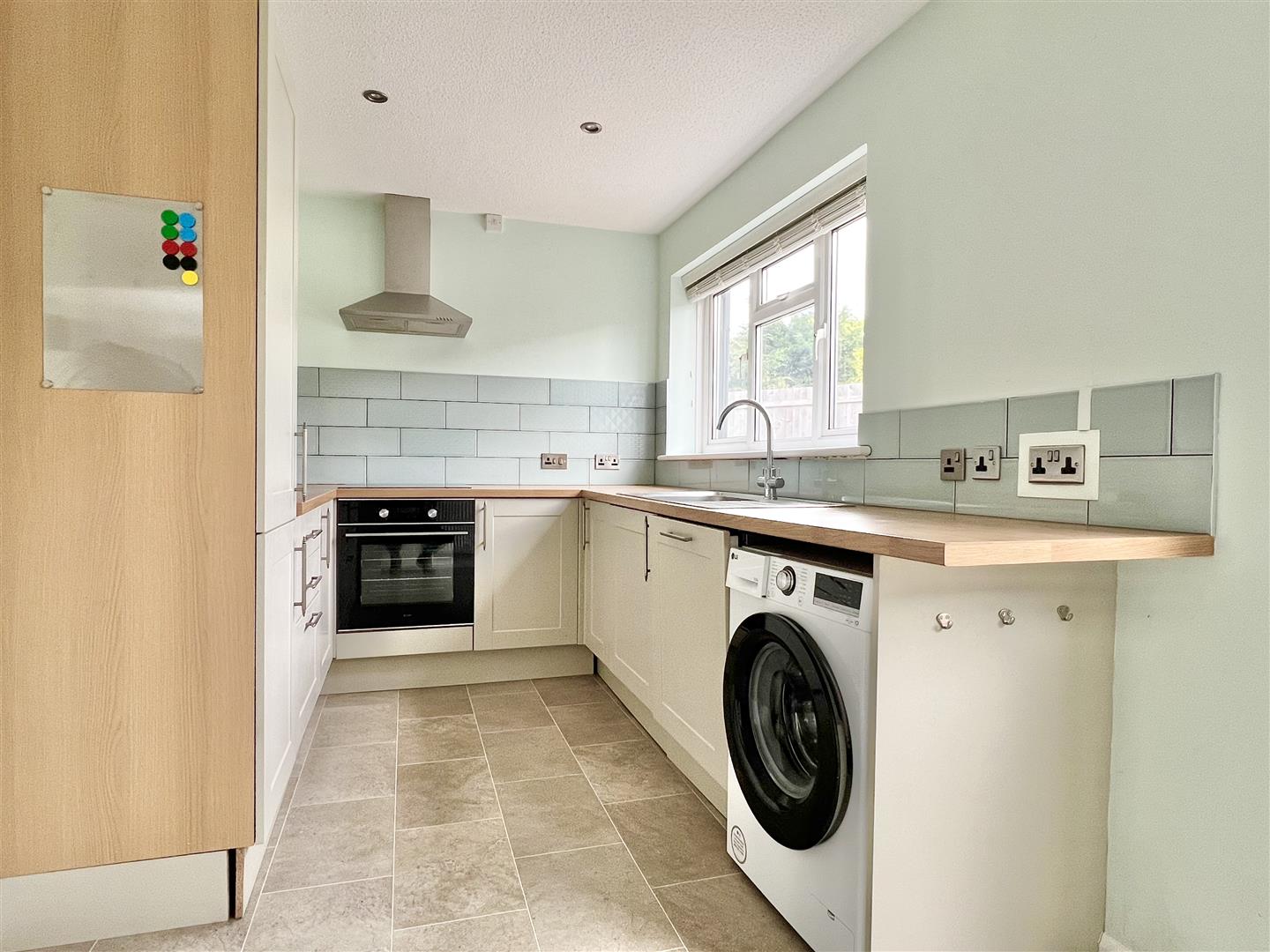 Kitchen - 4.62 x 2.28 (15'1" x 7'5") - Fitted with a range of matching wall and base units with work tops over and part tiled splashback walls. Comprising of an integral fridge freezer, a four ring electric hob with an extractor hood above and a oven underneath. Continuing round to a stainless steel sink and drainer with mixer tap. A window to the rear aspect overlooks the rear garden. Complete with inset downlights, radiator, smoke detector and fuse box