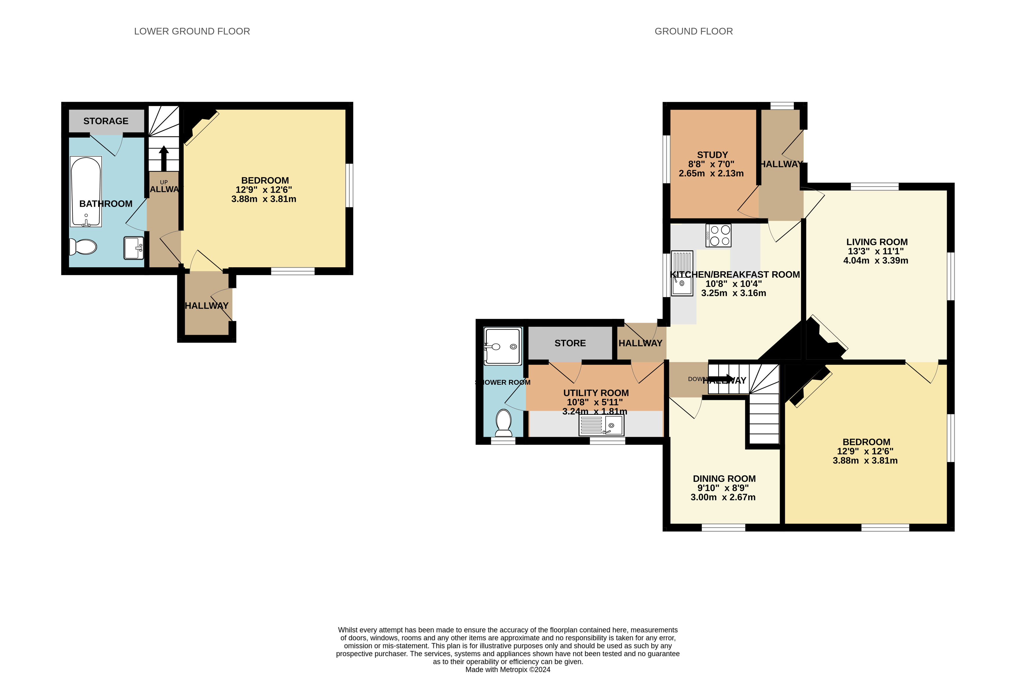 The property includes a family bathroom on the ground floor with a panelled bath, WC, hand wash basin, and an airing cupboard for additional storage.