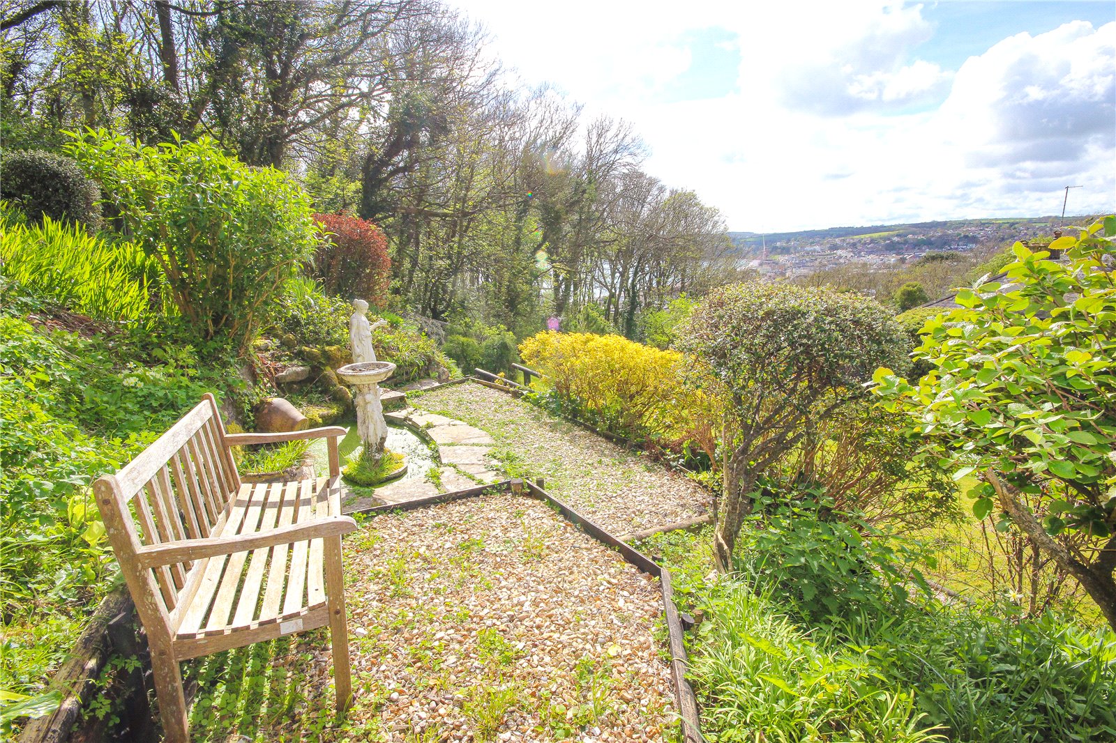 The sizeable gardens are landscaped over several levels, offering a mix of mature shrubs, flowering plants, and a large area laid to lawn. Gravelled footpaths lead to the top of the garden with a number of seating areas to take advantage of the views. In addition, there is an enclosed rear courtyard bordered by original stone walling.