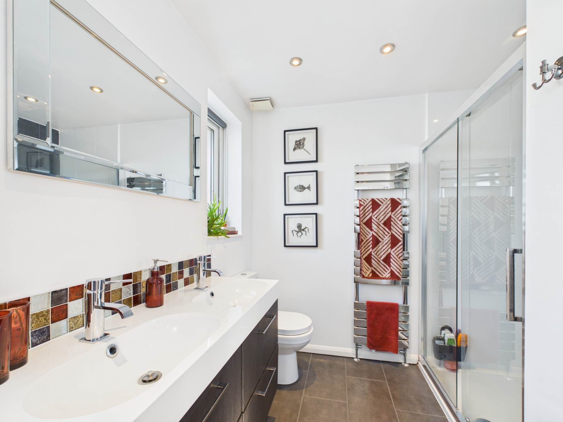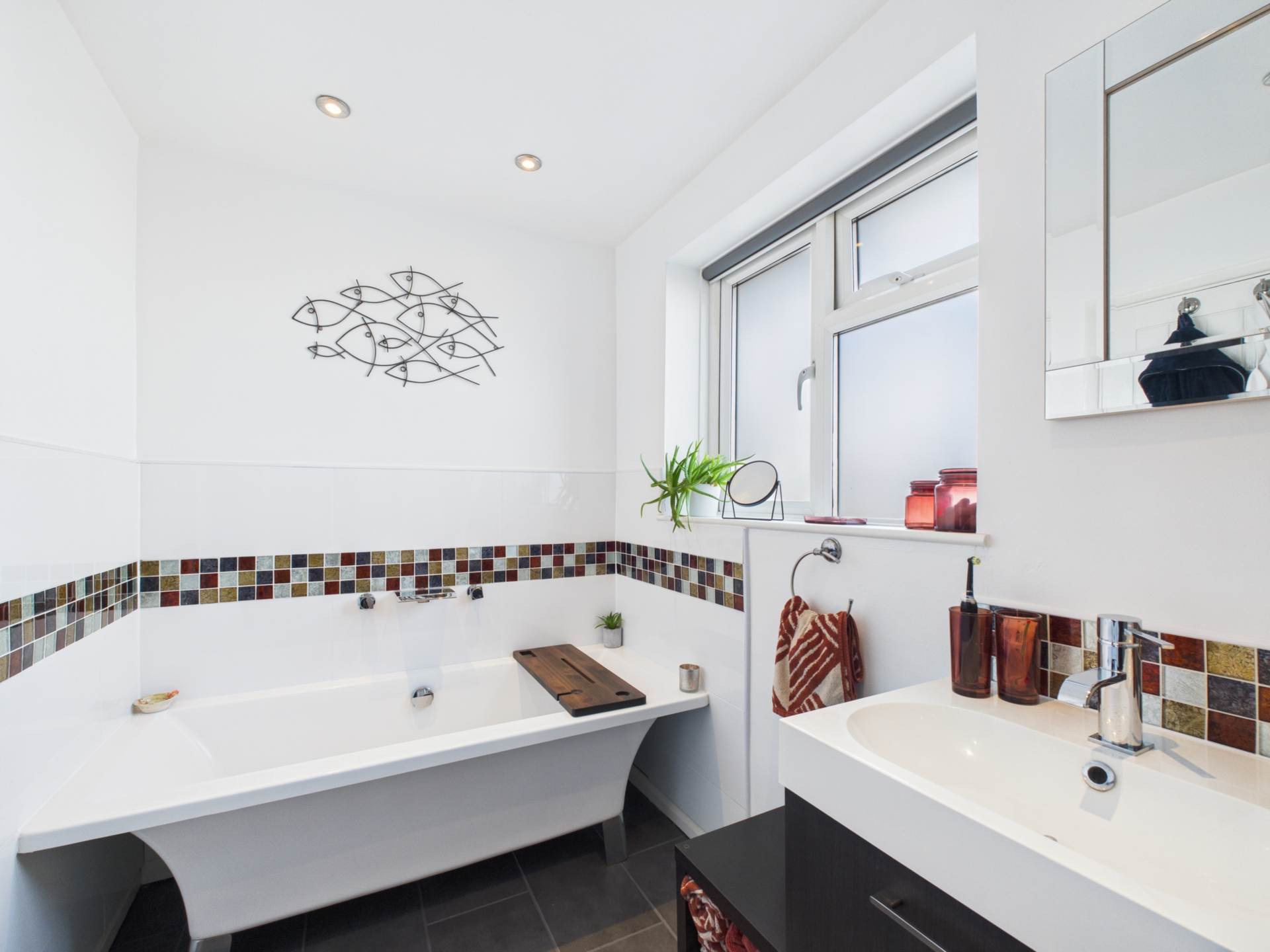- Stylish family bathroom with freestanding bath and walk-in shower