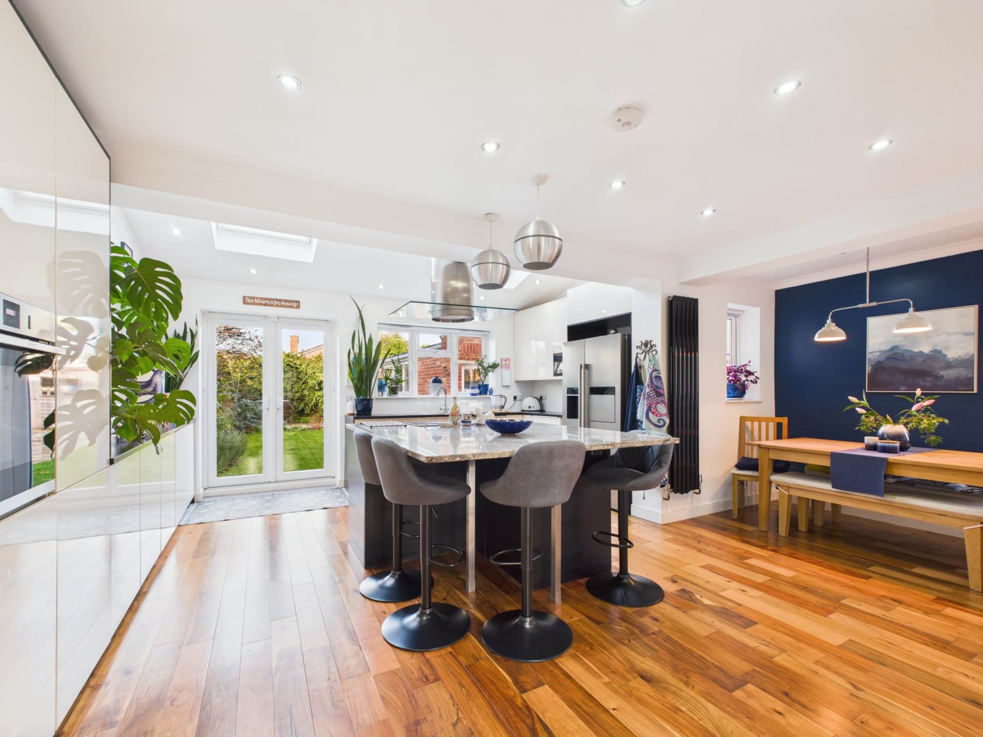 - Stunning open-plan kitchen/dining room with vaulted ceiling