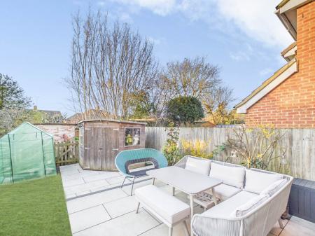 - Well-maintained private rear garden with patio, lawn, greenhouse & shed