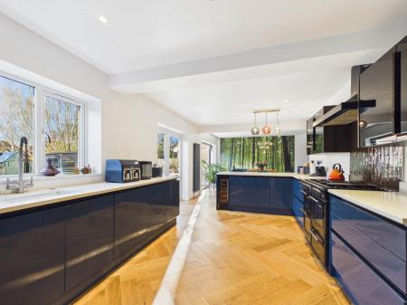 - Contemporary kitchen with quartz worktops, large island, breakfast bar & integrated appliances