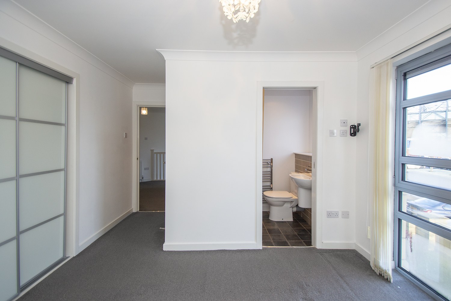 The accommodation is formed over two levels with the lower level comprising secure entry which leads to the welcoming entrance hallway with storage cupboard. Executive open plan Lounge/Dining area with French doors opening to the private garden area. Fitted kitchen which houses and ample range of base and wall units with complementary worktops and tiled splash-back areas, integrated appliances which include washing machine, fridge, freezer, gas hob, electric oven and extractor hood. Two-piece wc. The upper-level accommodation houses the well-proportioned master bedroom with two double fitted wardrobes and ensuite shower room; a further second bedroom with fitted wardrobes. contemporary three-piece bathroom comprising of wc, wash hand basin and bath.