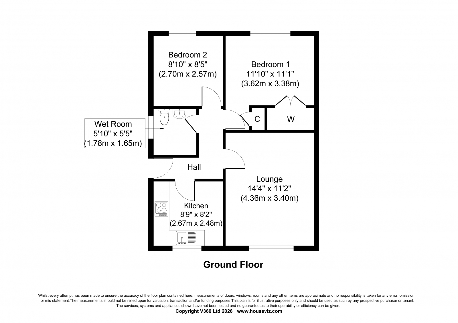 There are two generously proportioned bedrooms, one of which benefits from fitted storage cupboards. Completing the accommodation is a sleek and modern wet room, thoughtfully designed for ease and comfort.