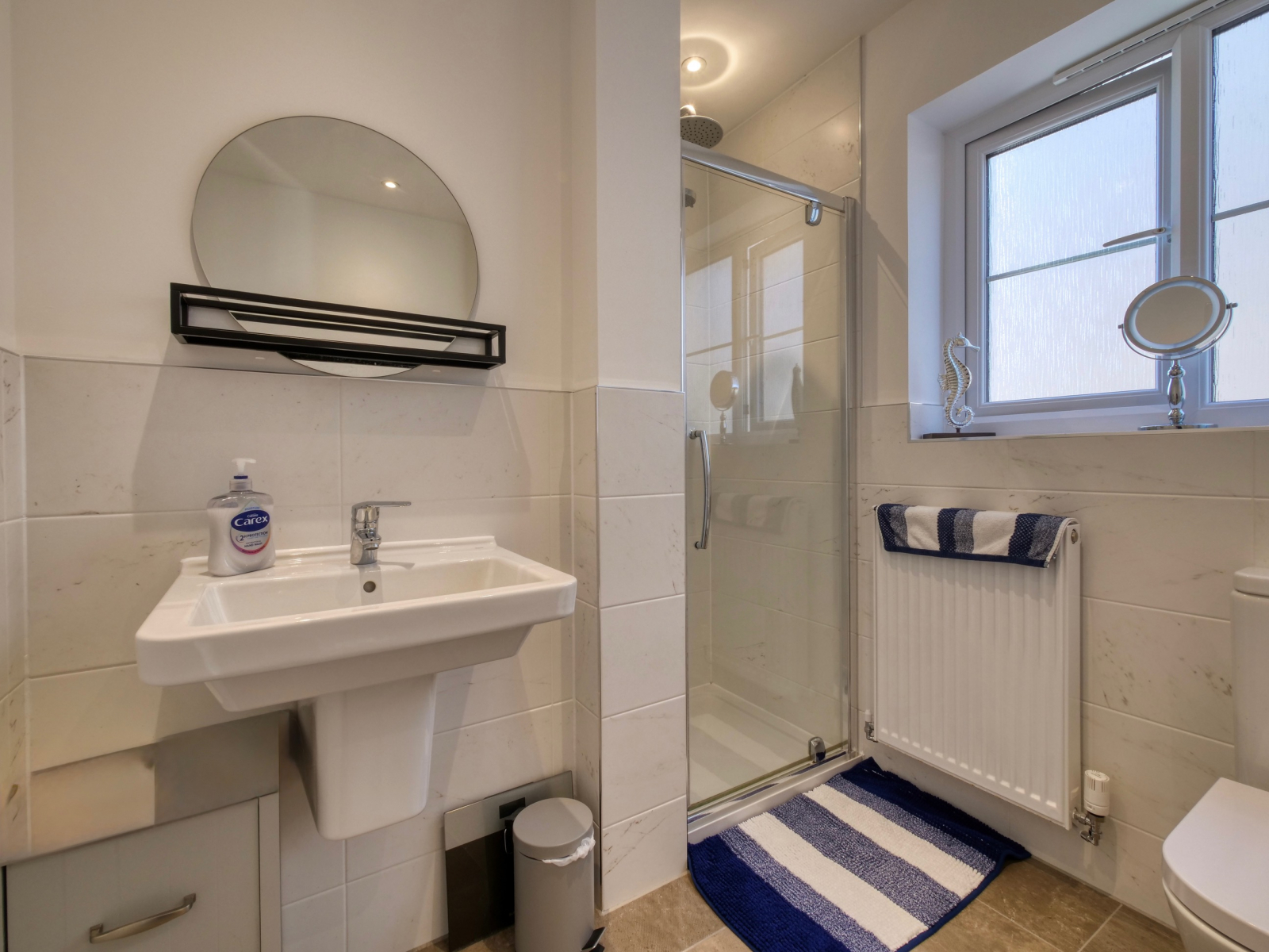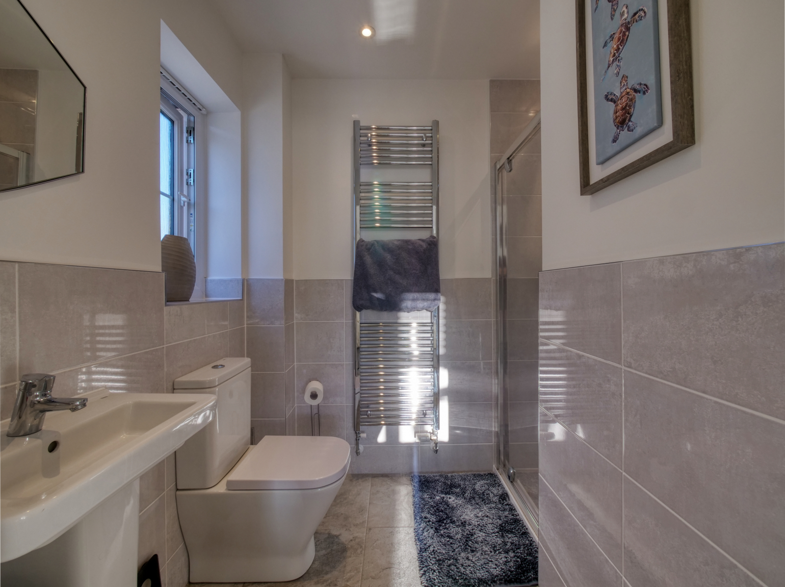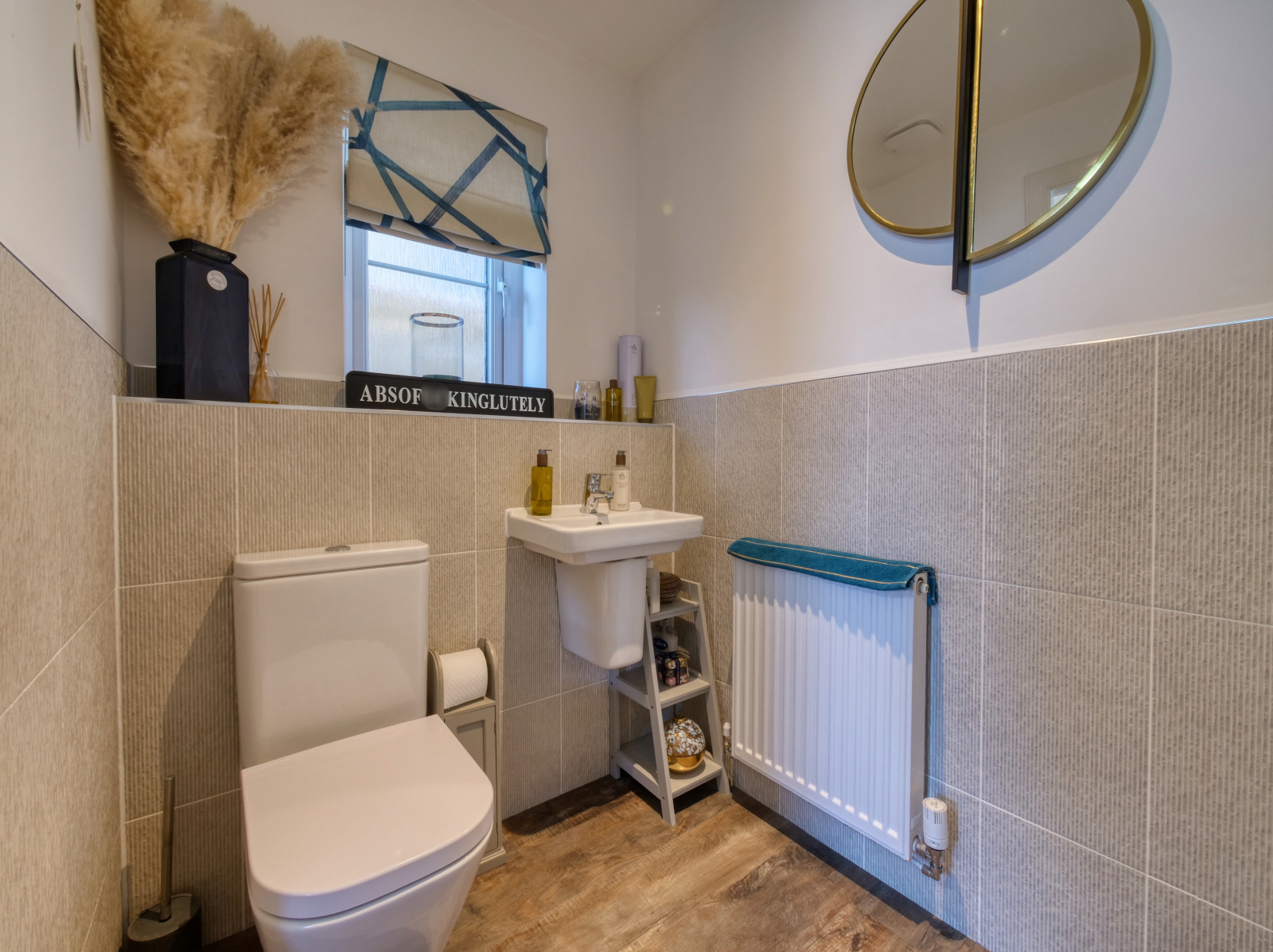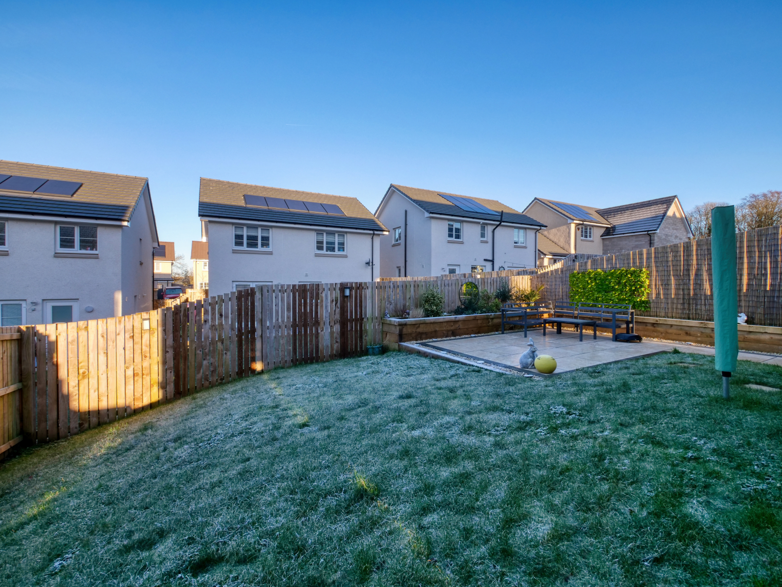 - ully enclosed rear garden with lawn, patio area and shrub border