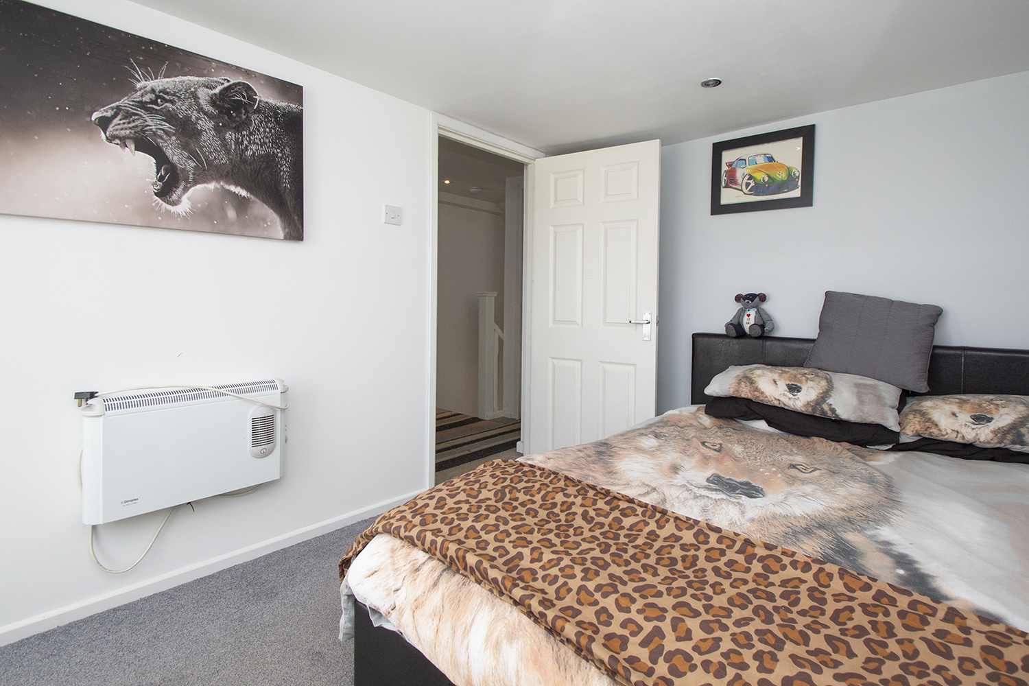 The staircase from the dining kitchen leads to the two excellent sized attic rooms with Velux windows.