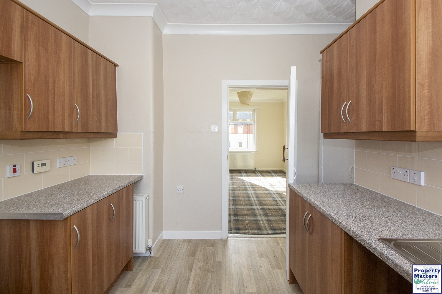 This well-proportioned accommodation is ideally formed over the one level and comprises entrance hallway, excellent sized front facing lounge, fitted kitchen which houses an ample range of base and wall units with complementary worktops, tiled splash-back areas and upvc leading to the rear garden. Three double bedrooms. Wet room.