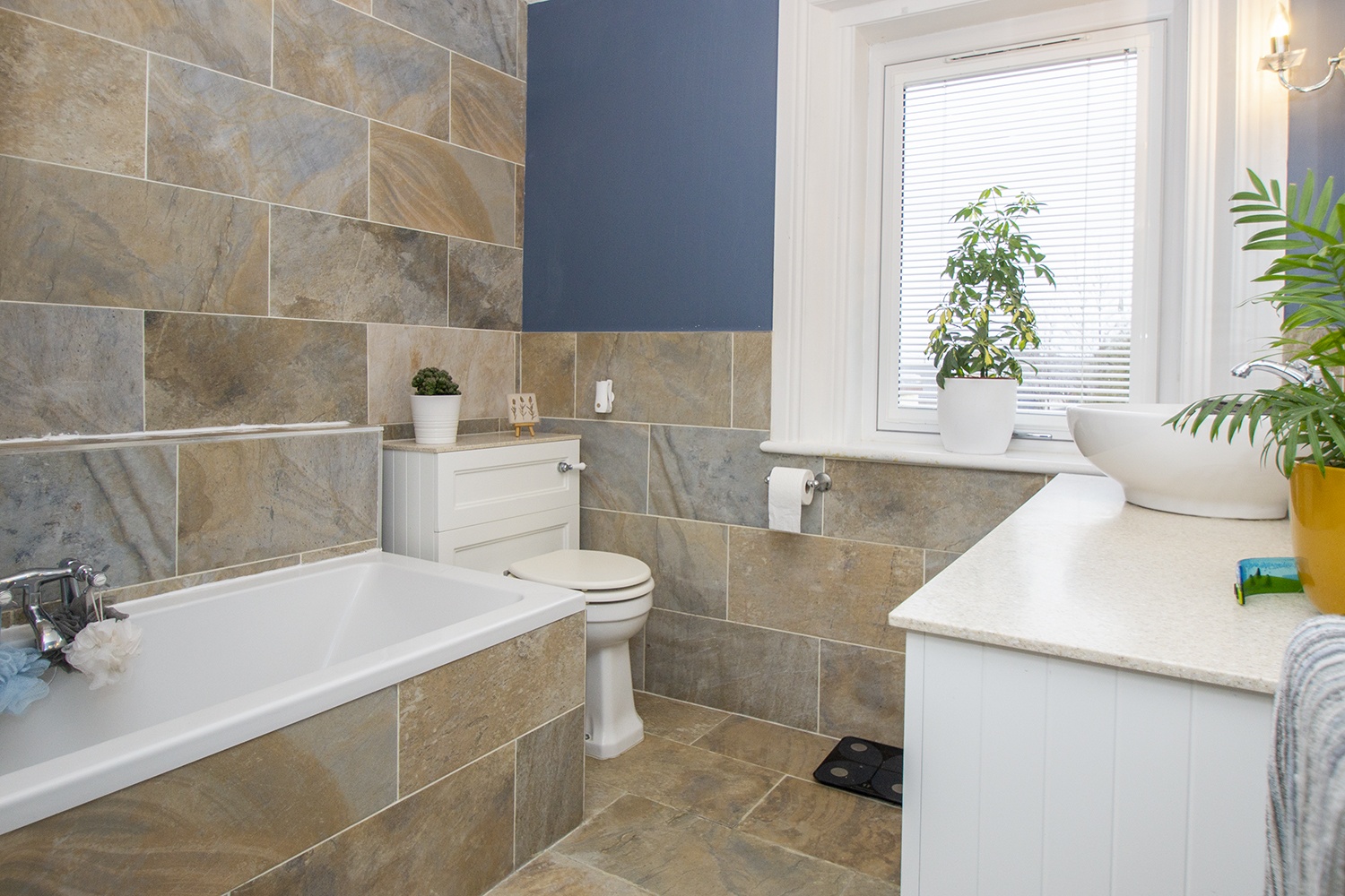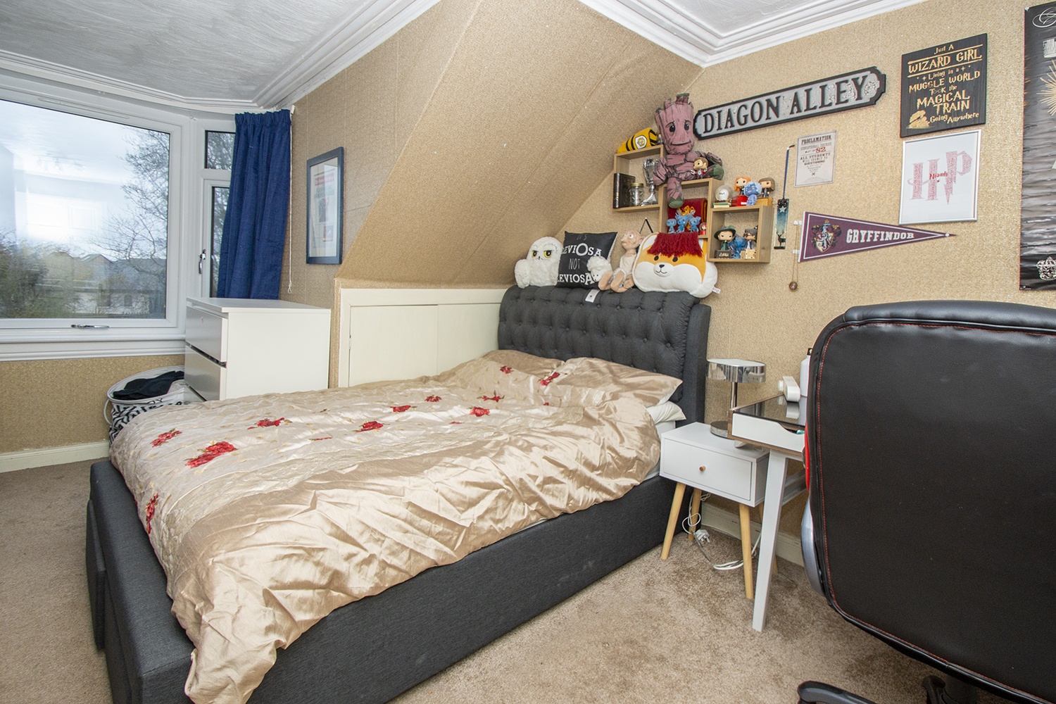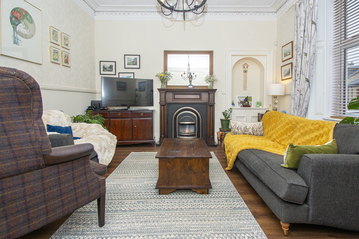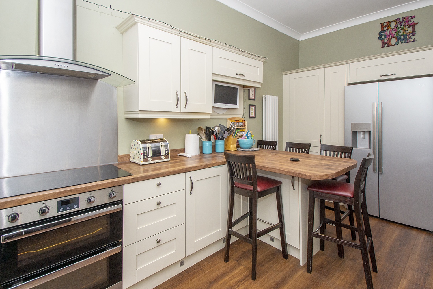 This well presented family home offers well-proportioned living space throughout. The accommodation is formed over two levels with additional mid level bathroom, on the lower level comprising spacious lounge with feature fireplace, large rear facing kitchen housing an ample range of base and wall units with complementary worktops, integrated induction hob double oven, American fridge freezer, dishwasher, plumbing for automatic washing machine handy breakfast bar. There is also a flexible room downstairs which is currently used as a bedroom but could be dining room or home office. On the mid level floor there is a three piece family bathroom comprising wc, wash hand basin and bath with over head shower. The upper level comprising of three spacious bedrooms.
