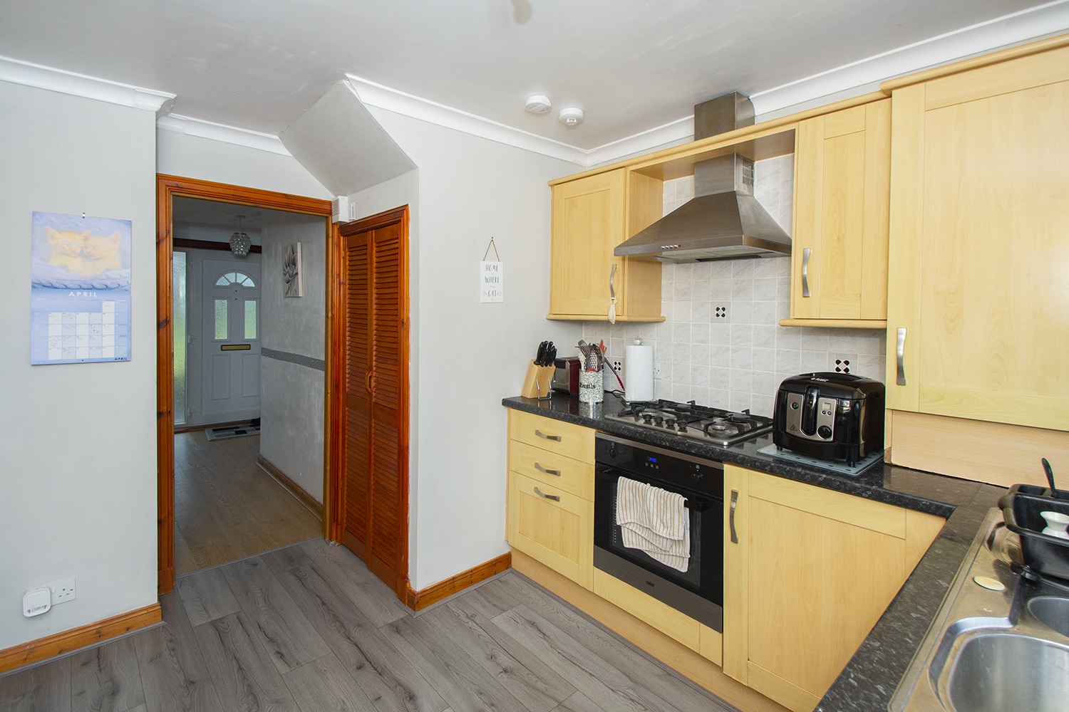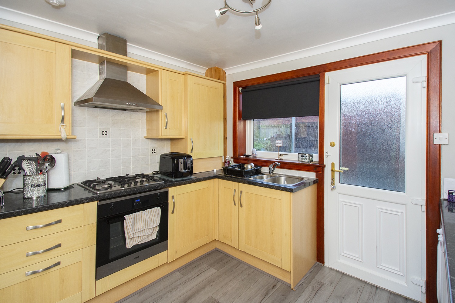 This spacious family home is formed over two levels with the lower level comprising entrance hallway; Excellent sized open plan lounge/dining with twin aspect window formation which allows an abundance of natural light to flow through. Fitted kitchen housing an ample range of base and wall units with complementary worktops and tiled splash-back areas, integrated gas hob, electric oven and extractor hood, rear door giving access to the enclosed garden area. The upper level accommodation houses the main bedroom with fitted mirrored wardrobes; a further two bedrooms and three piece family bathroom comprising WC, wash hand basin with vanity unit and bath with over-head electric shower and glass screen.