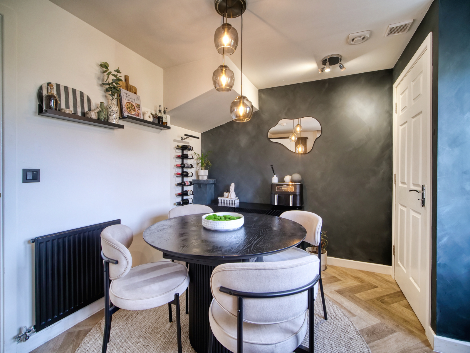 Upon entering the property, you are welcomed into a bright and spacious living room, beautifully enhanced by tasteful wall panelling and natural light. A convenient under-stair storage cupboard adds practicality to this inviting space.