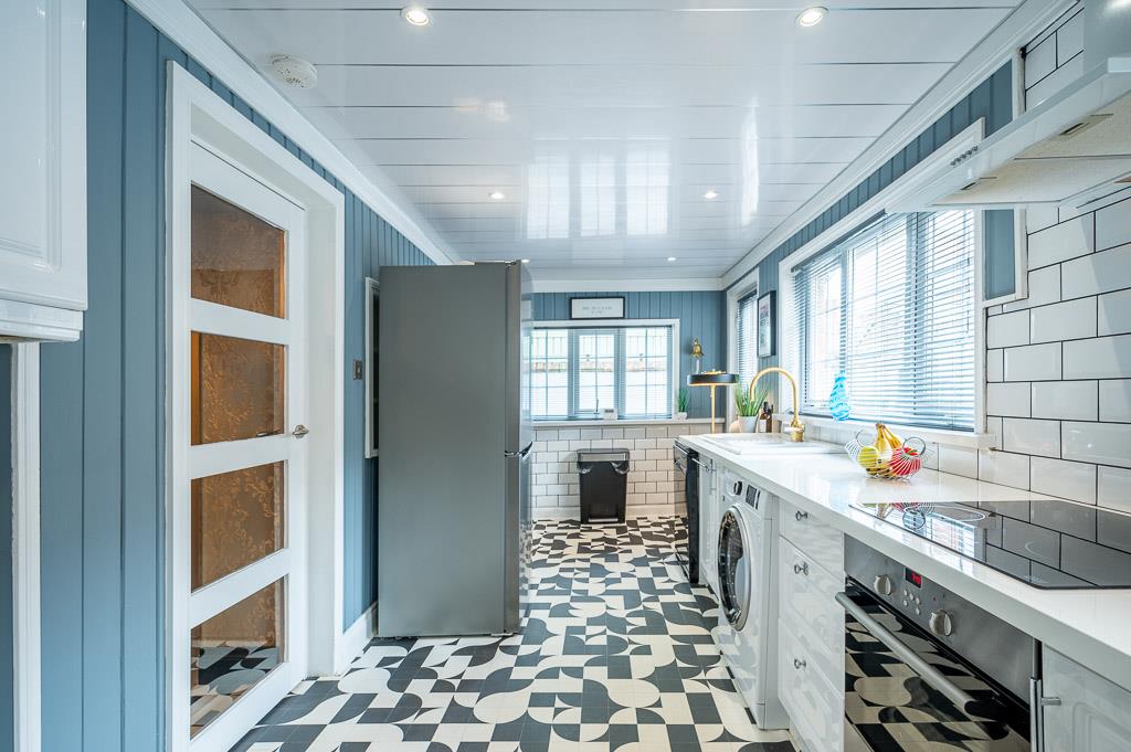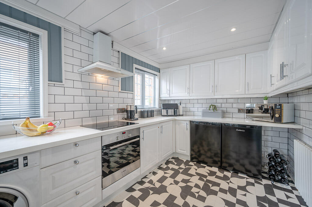 .Modern Fitted Kitchen with Range of Built in Units and Storage and Access to Rear Courtyard