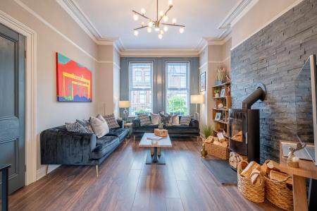Drawing Room: - (6.35m x 4.19m) - Laminate wooden floor, picture rail, cornice ceiling, ceiling rose.