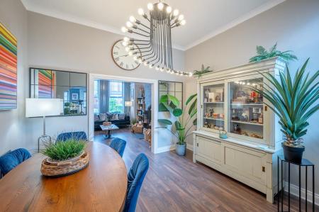 Dining Room: - (4.09m x 3.15m) - Laminate wooden floor, cornice ceiling.