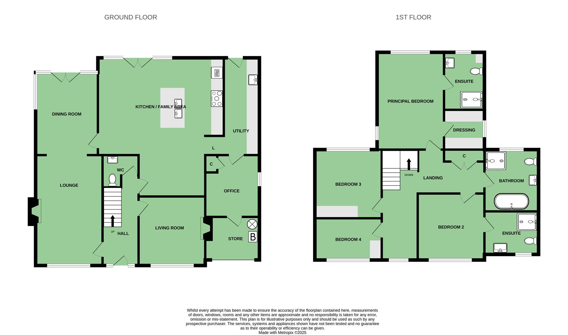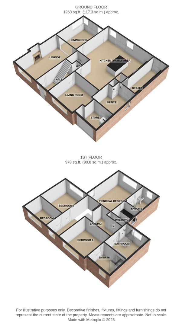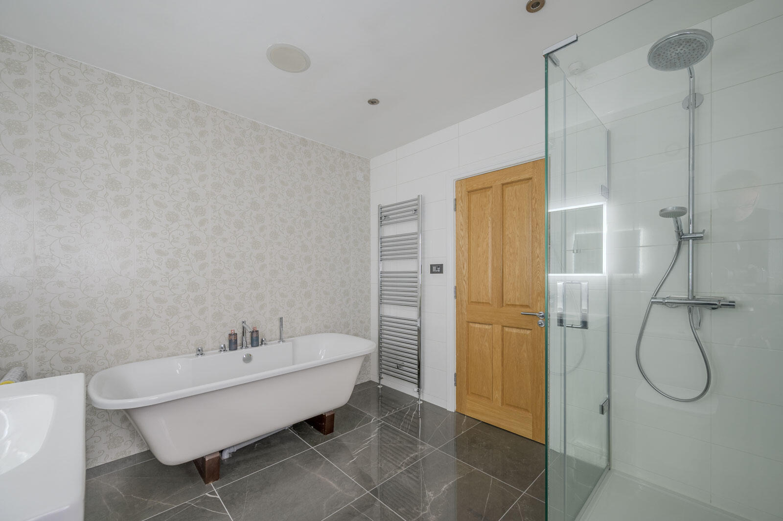 Upstairs, there are four well-proportioned bedrooms, principal with dressing room and en suite shower room, second bedroom with ensuite shower room and a stylish family bathroom with contemporary finishes.