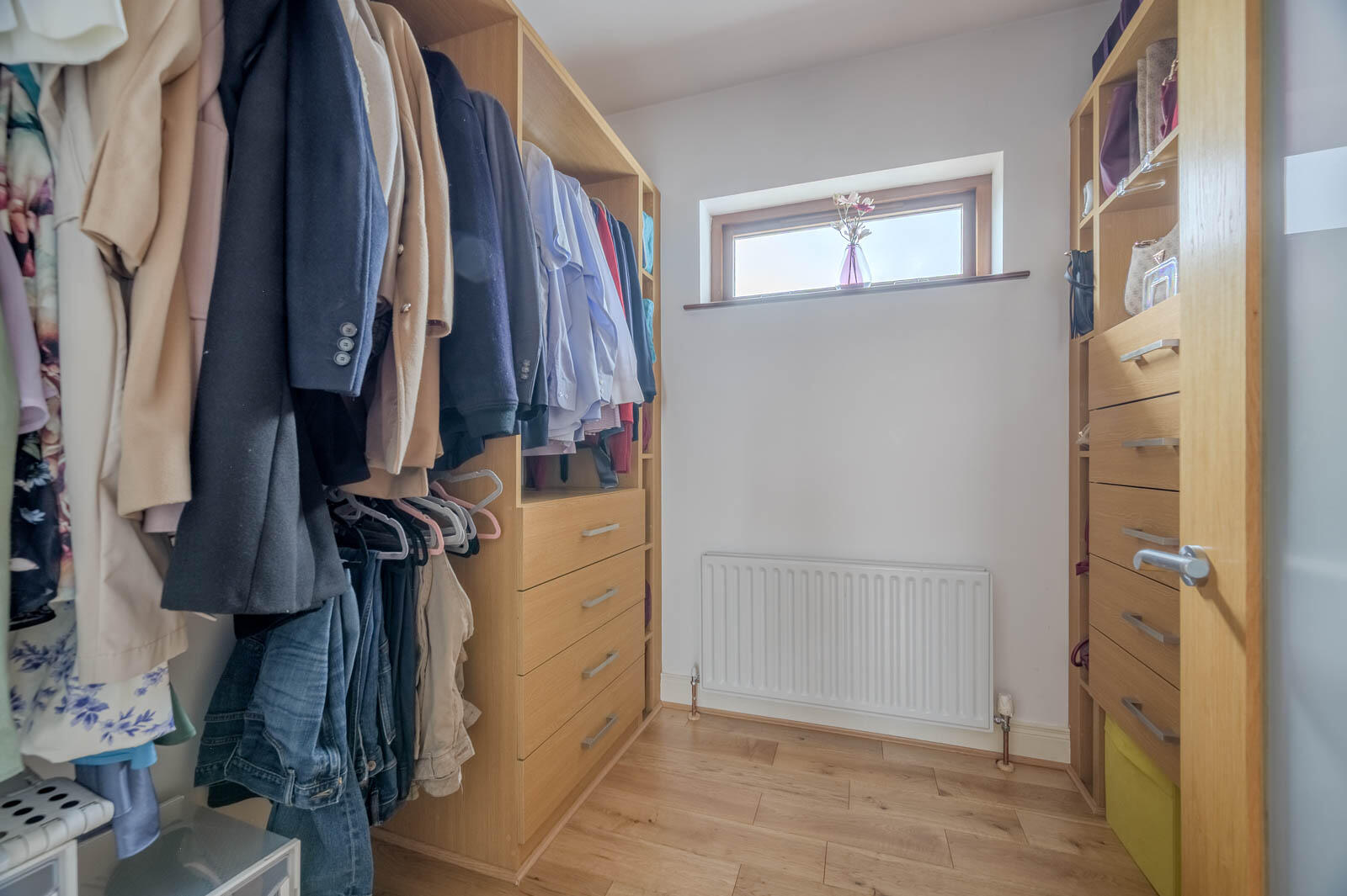 Dressing Room: - 6'7" x 6'8" - With engineered wood flooring, bespoke range of beech drawers, hanging and shelving space.