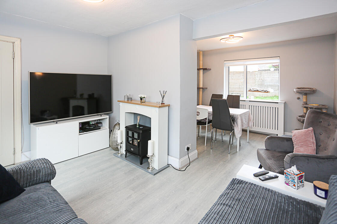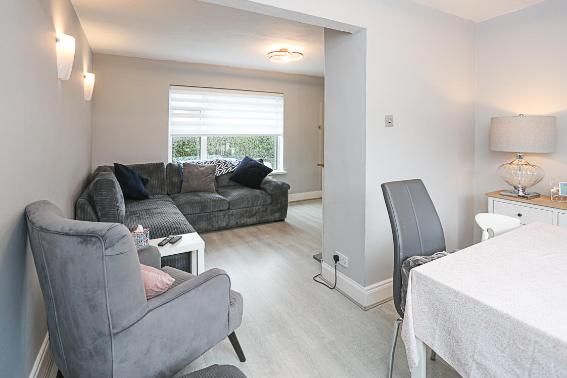 On entering, a welcoming reception hall leads through to the bright lounge, which opens seamlessly into the dining room, an ideal arrangement for both everyday living and entertaining. The fitted kitchen provides direct access to a useful utility area, enhancing the home's practicality and storage options. Upstairs, there are three well-proportioned bedrooms, offering flexibility for families, professionals, or those seeking a guest room or home office. The accommodation is completed by a separate WC and a family bathroom.