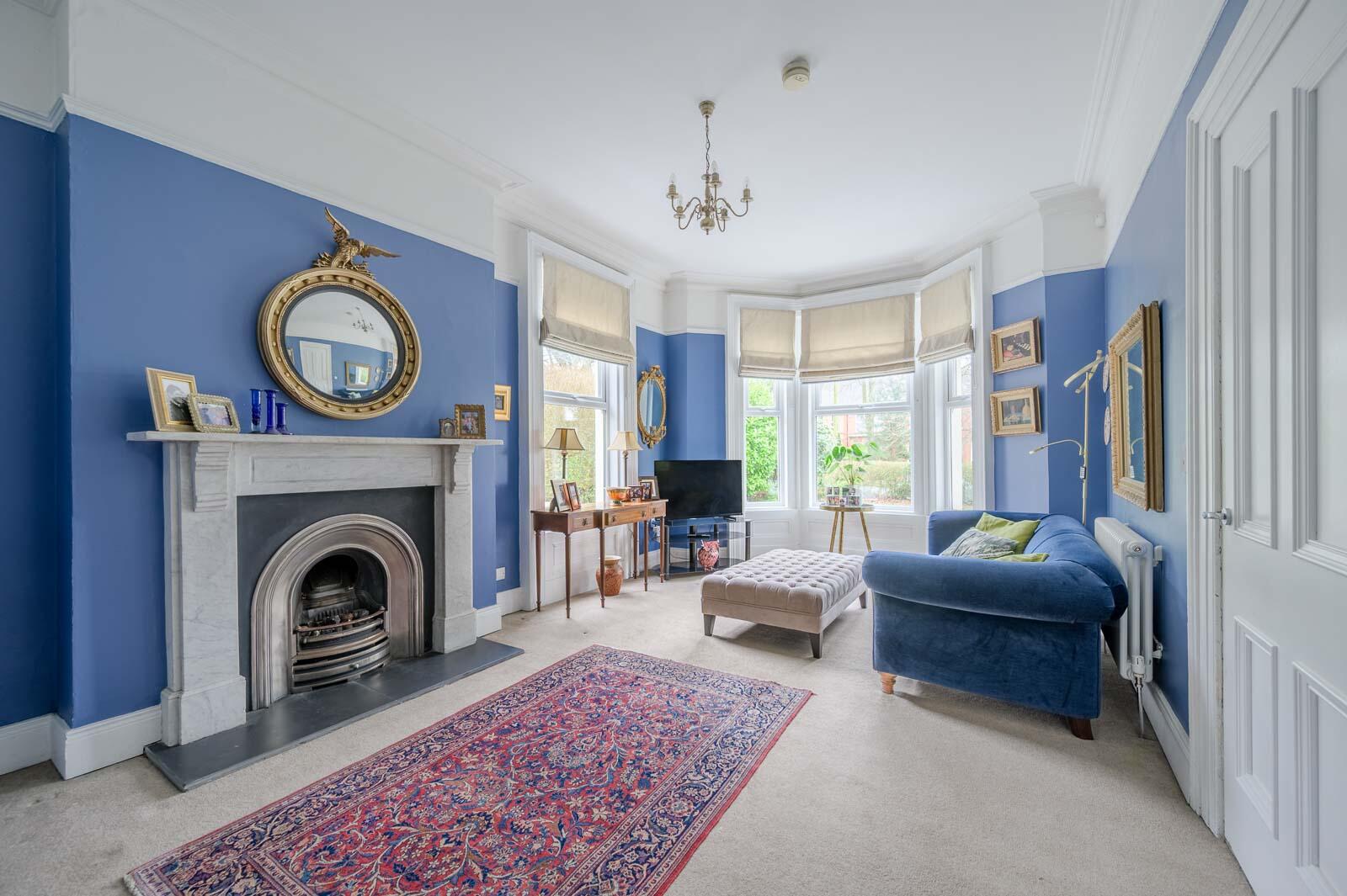 Lounge: - 20'0" x 12'4" (measurements into bay window) - Period white marble fireplace surround, cast iron and polished inset, slate hearth, cornice ceiling, picture rail, measurement into bay window, dual aspect outlook with outlook to side and mature outlook to front gardens and Cyprus Avenue, period style radiators.