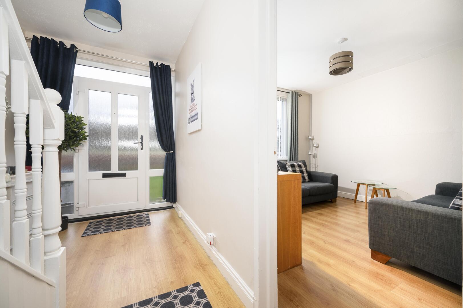 Spacious Hallway - Laminate wooden floor, built-in under stairs storage cupboard.