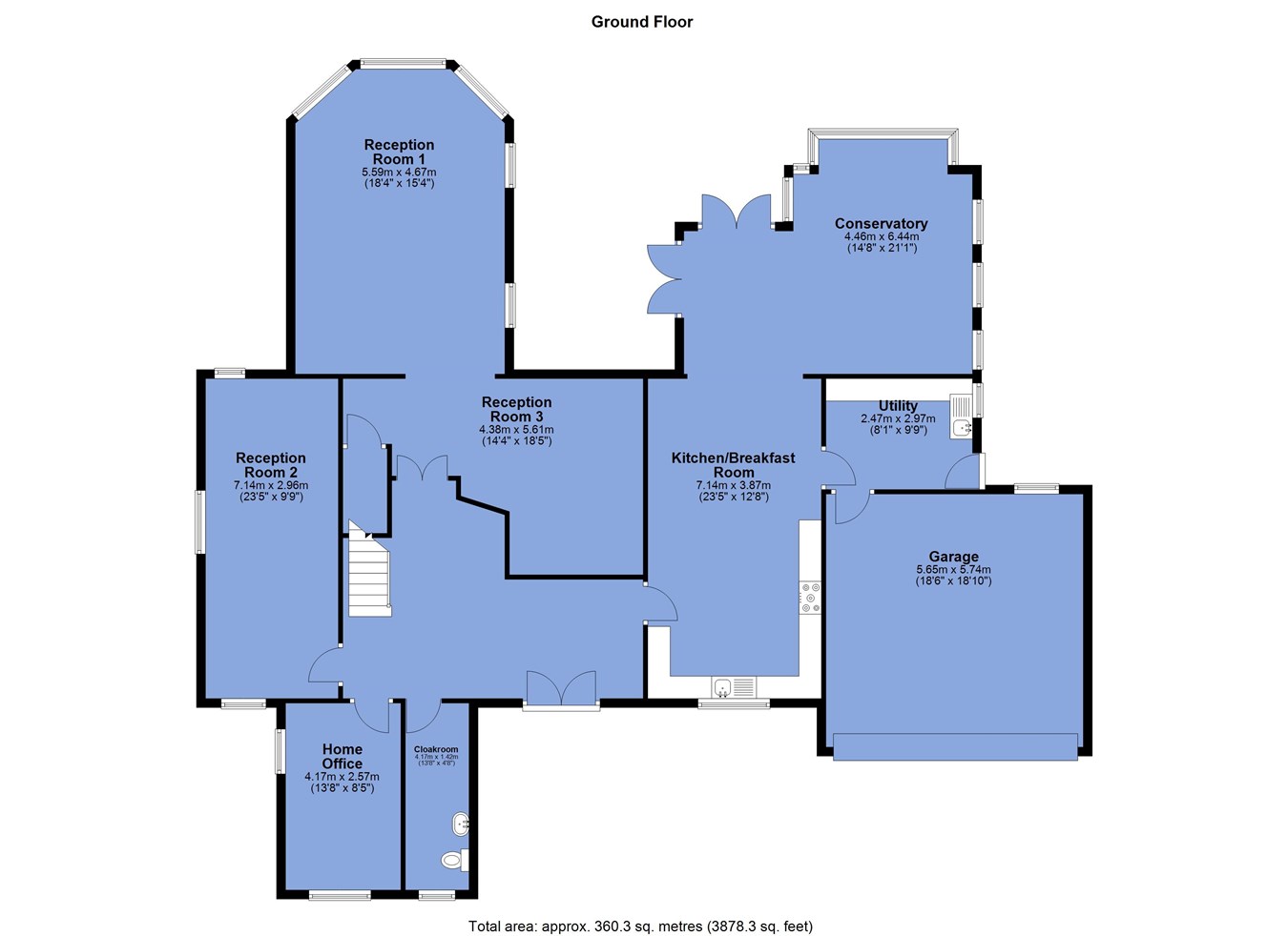 - Five ground floor living room rooms plus grand hallway
