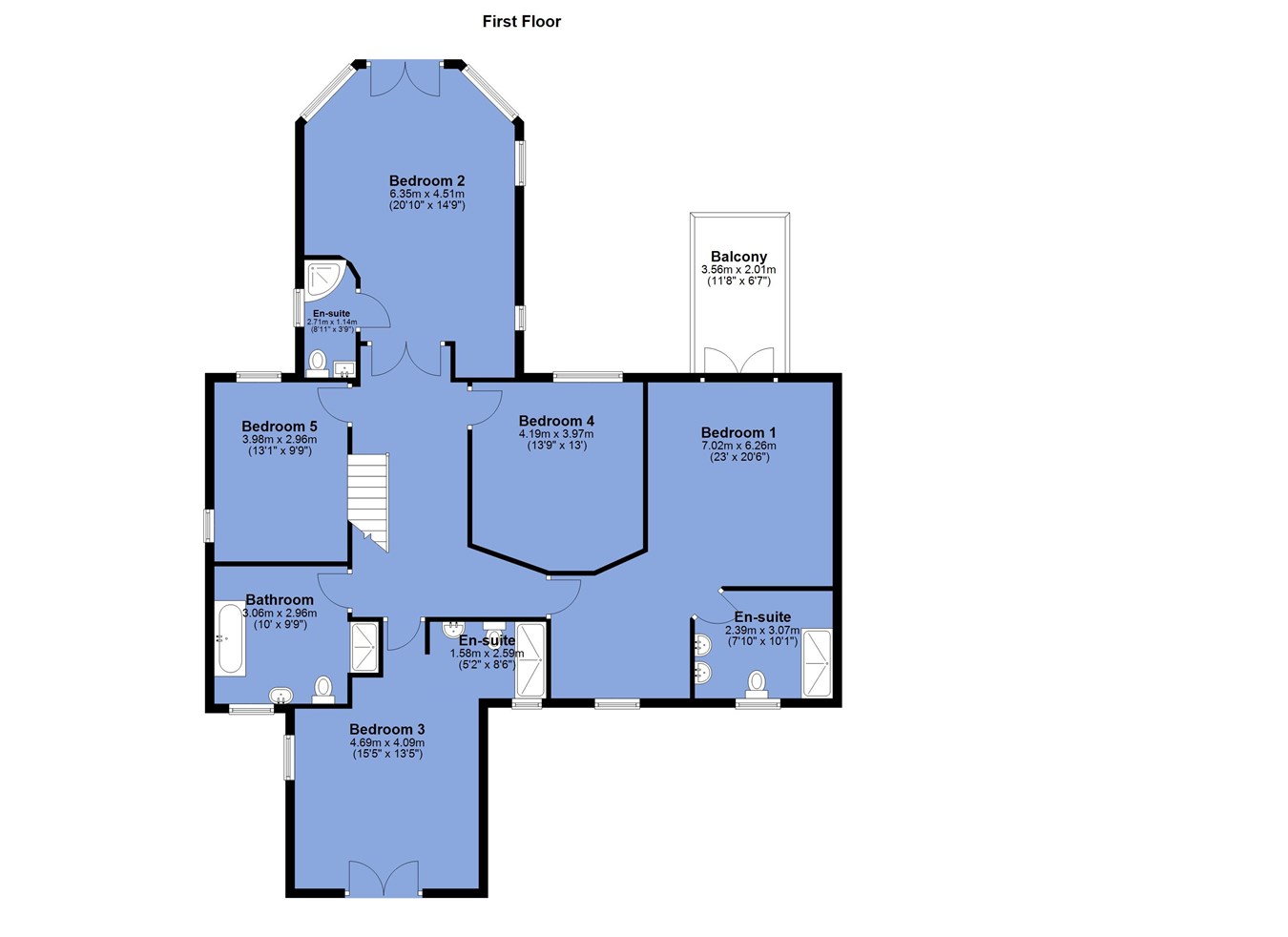 - Five first floor double bedrooms three with ensuite
