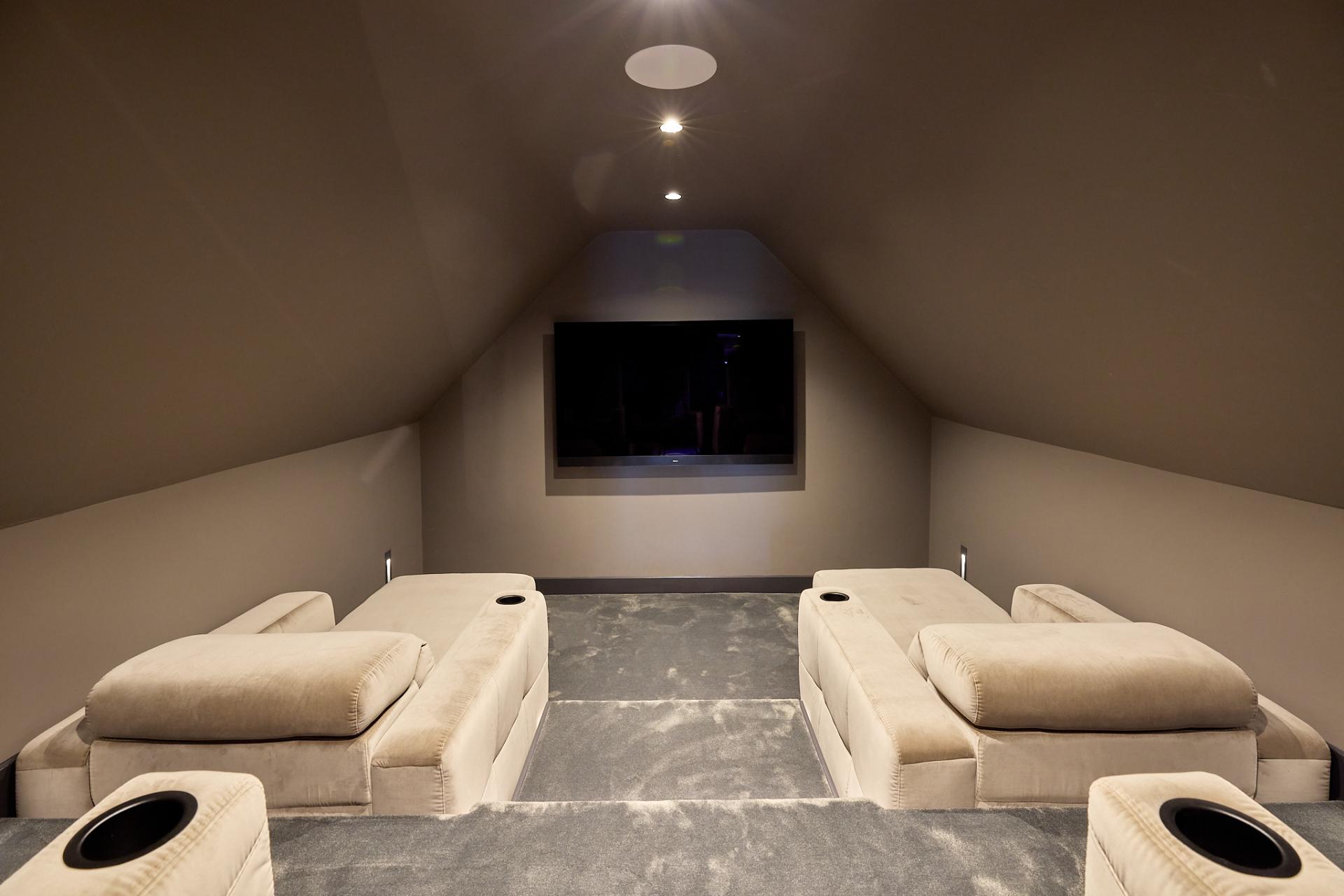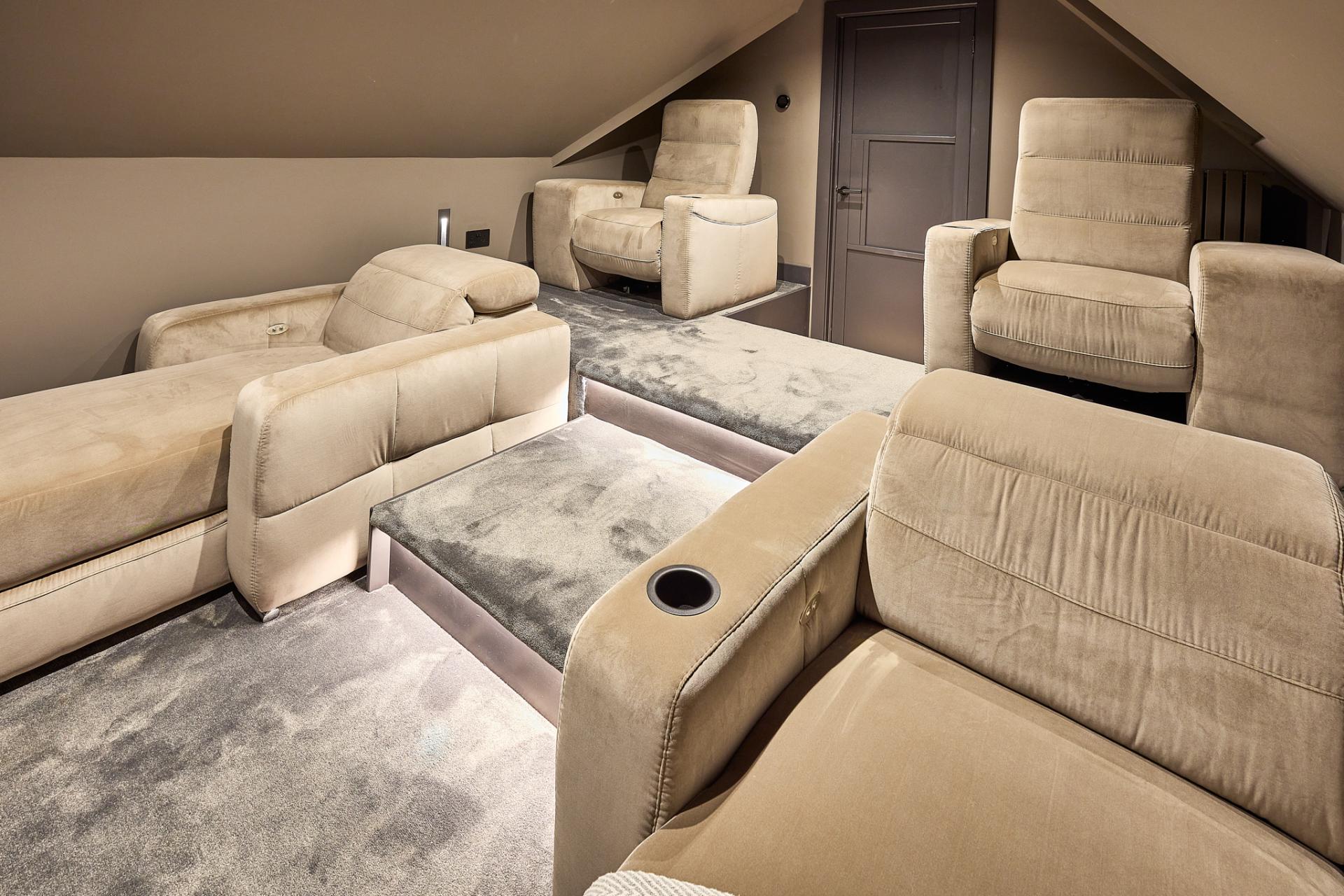 Next up is a state-of-the-art cinema room – the cherry on top of an impressive family home that has entertainment at its heart. With plump reclining sofas, mood lightning and fluffy carpet underfoot, all that’s left to do is serve the popcorn and relax.