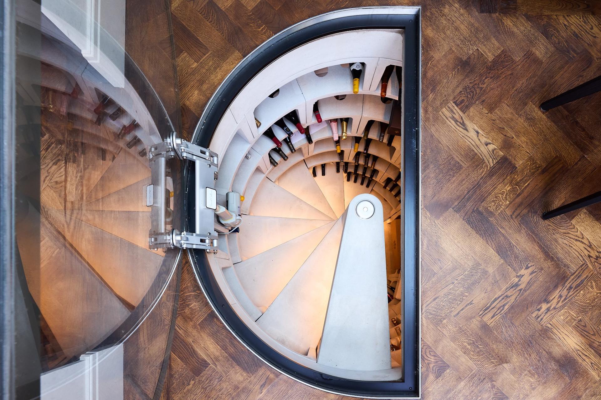 As you turn back to head out through the dining room - don’t forget to look down to discover the glass covered wine cellar that has been crafted below floor level into the basement in the style of a spiral staircase. This completely, unique showstopper holds hundreds of bottles of wine at ambient temperature. Once the lid is lifted, you can officially let the dinner parties commence.